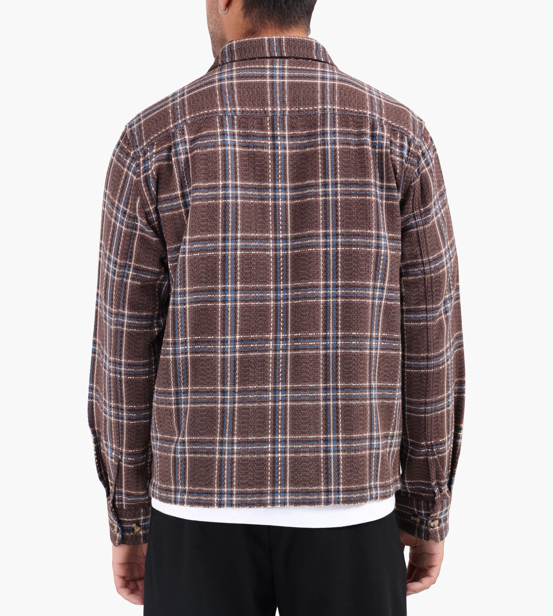 The Corridor Venice Plaid Zip Jacket in Brown is crafted from a premium midweight fabric, offering an ideal balance of structure and softness. Its plaid pattern weaves rich brown tones with subtle contrasts, channeling a timeless yet contemporary aesthetic. A full-zip front enhances its versatility, allowing it to function as both a standalone layer or an overpiece.