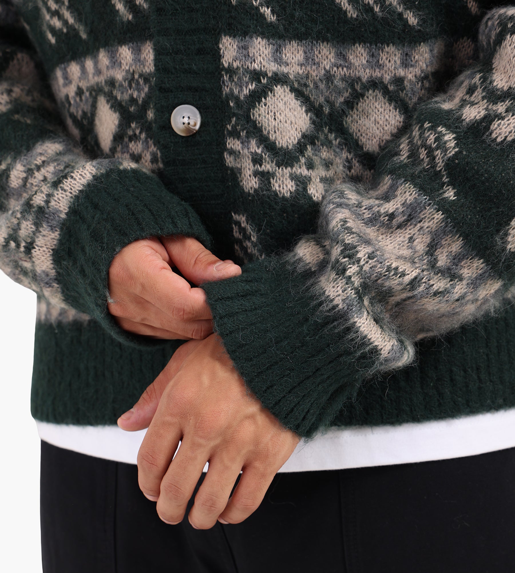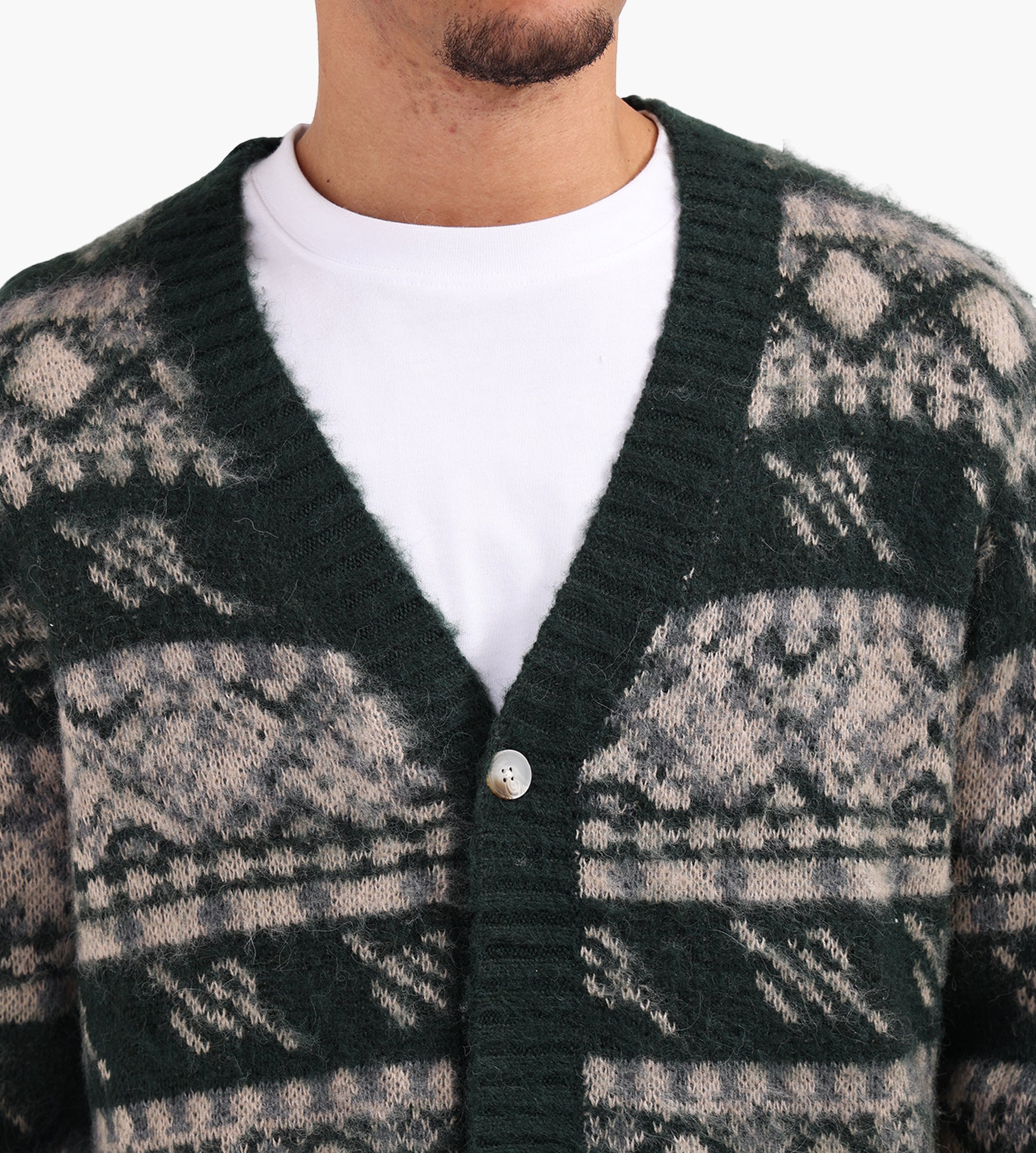 The Daily Paper Pattern Check Cardigan combines a multi-colored palette with a textured knit, crafted from a blend of 72% acrylic, 18% wool, and 10% nylon. Its patterned design features all-over print artwork, accented with subtle Daily Paper monogram details for a refined touch. A button closure anchors the cardigan’s relaxed silhouette, while the soft knit texture ensures comfort throughout the day.