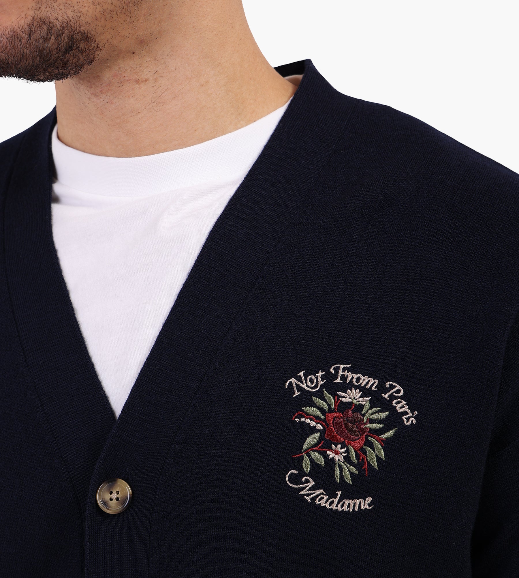 Drôle de Monsieur Le Cardigan Slogan Rose Navy