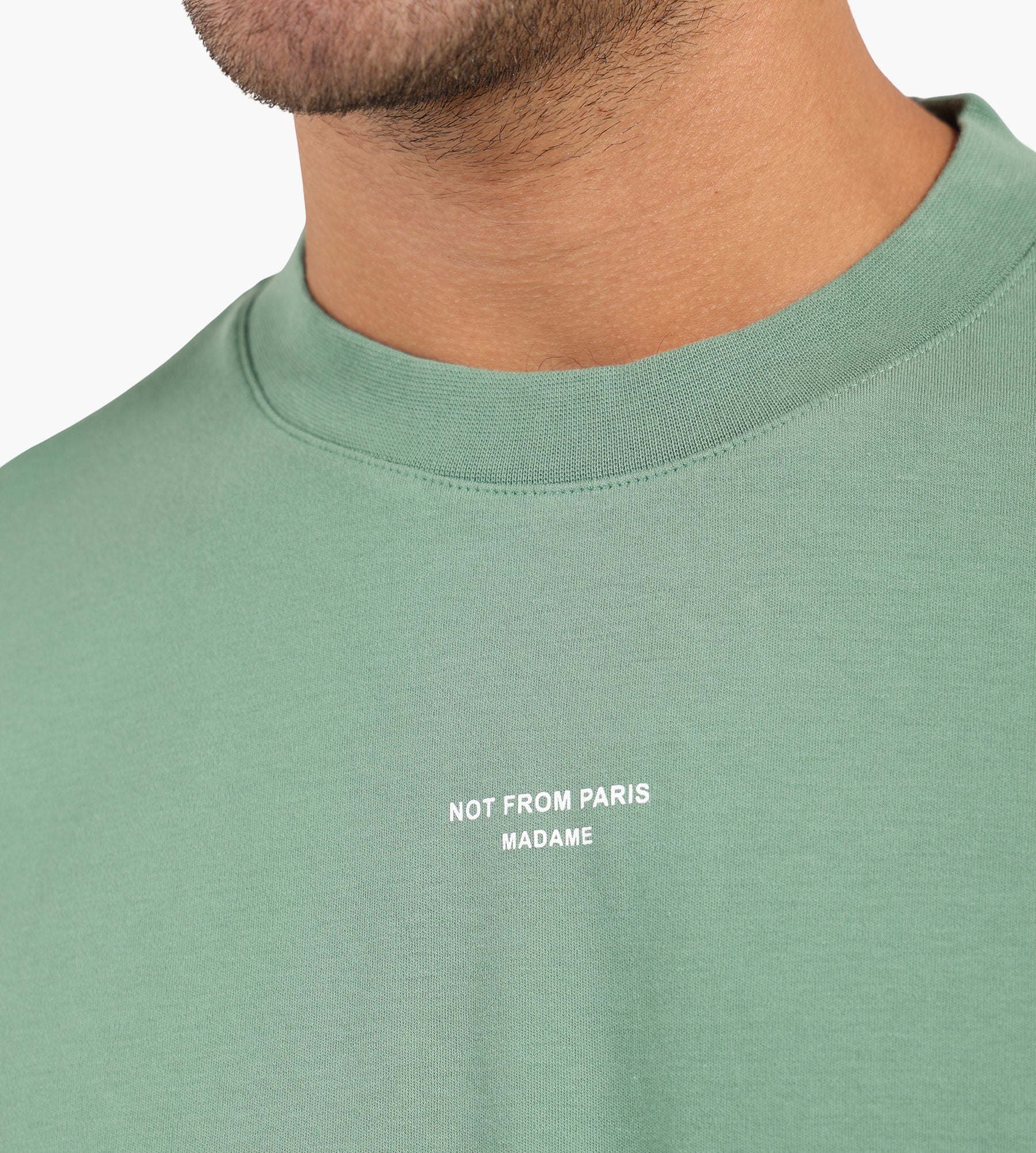 Featuring the brand's signature "Not From Paris Madame" slogan printed on both the front and back, this men's graphic tee blends understated design with a bold statement. Ideal for layering or wearing solo, it adapts seamlessly to casual routines while maintaining a refined edge.