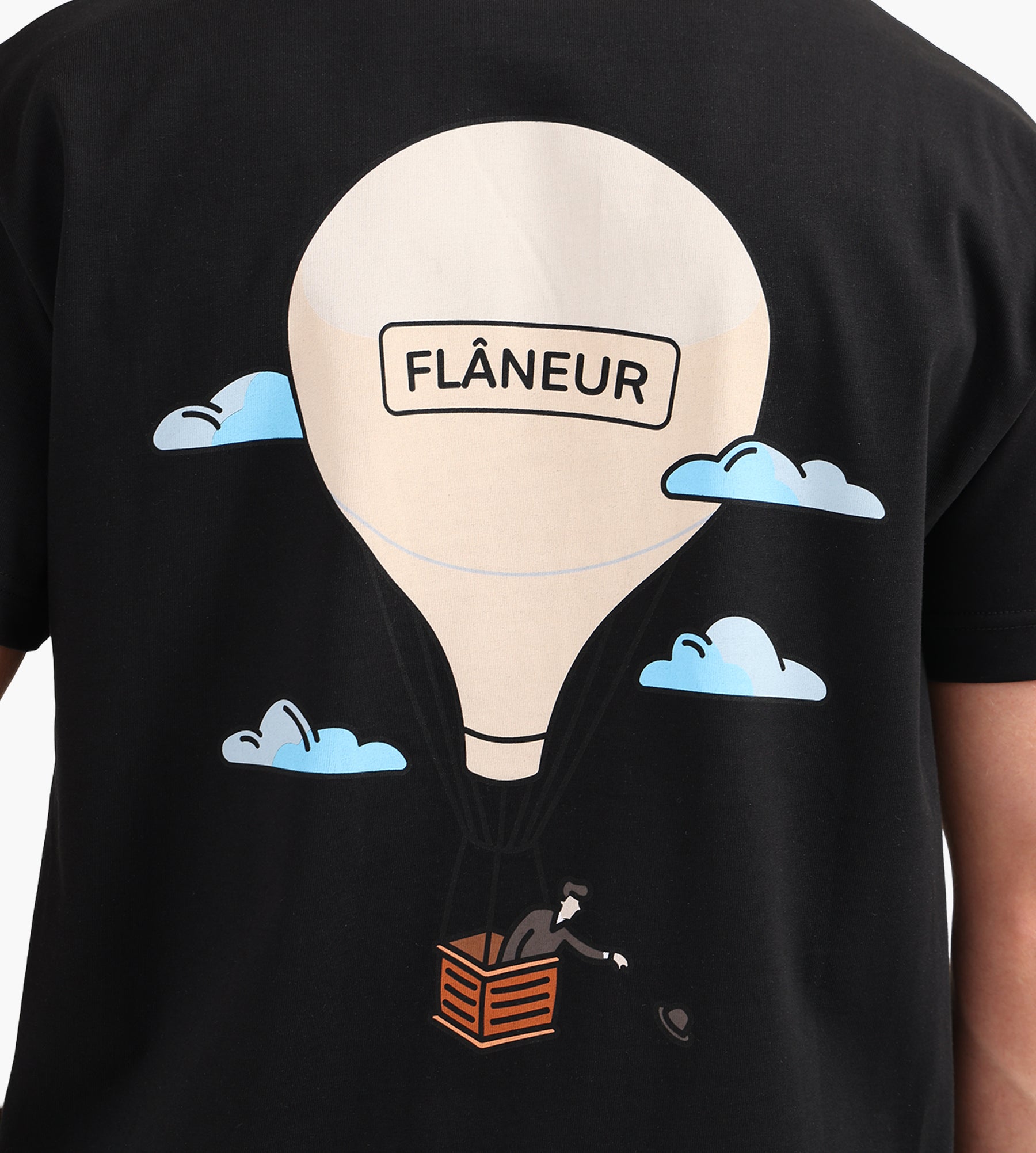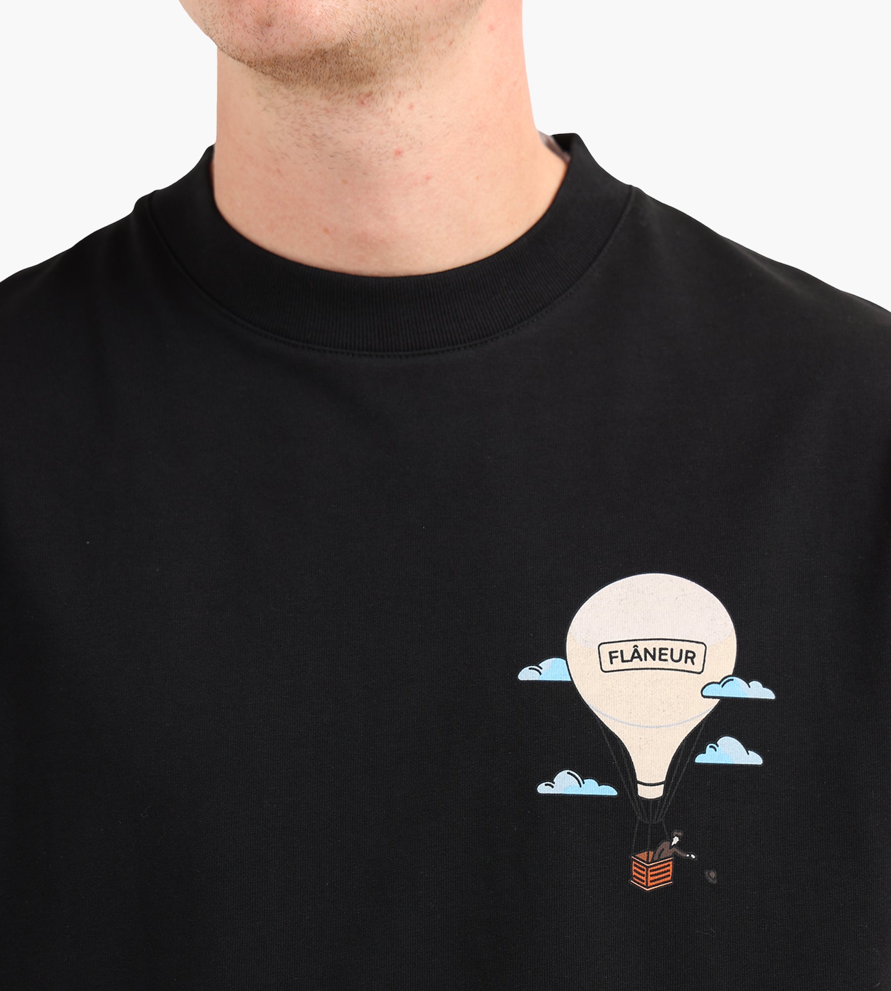 The Flâneur Aéronautique T-Shirt in Black is crafted from premium cotton, offering a soft yet durable foundation for everyday wear. Its minimalist design is accented by a tonal emblem, nodding to the brand’s aviation-inspired heritage while maintaining a versatile aesthetic.