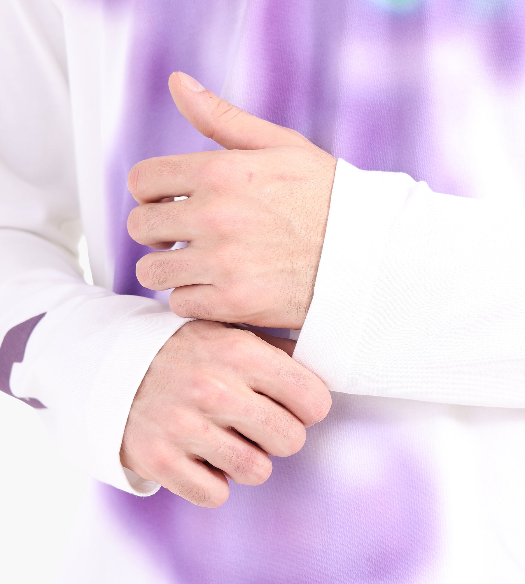 - White with overlapping screen-printed design