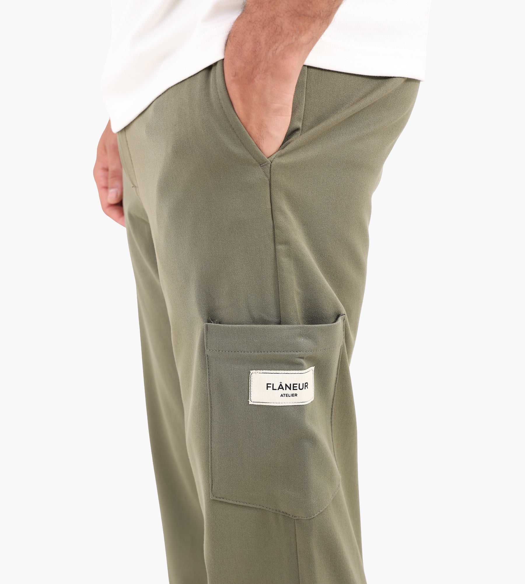 The Flâneur Atelier Tailored Trousers in Khaki are crafted from a blend of 64% PES, 32% VIS, and 4% LYC, delivering a refined balance of structure and comfort. Designed with a tailored silhouette, these trousers are elevated by the signature FLÂNEUR atelier patch, inset slant pockets, and a functional cargo patch pocket featuring a branded label for a subtle utilitarian nod.