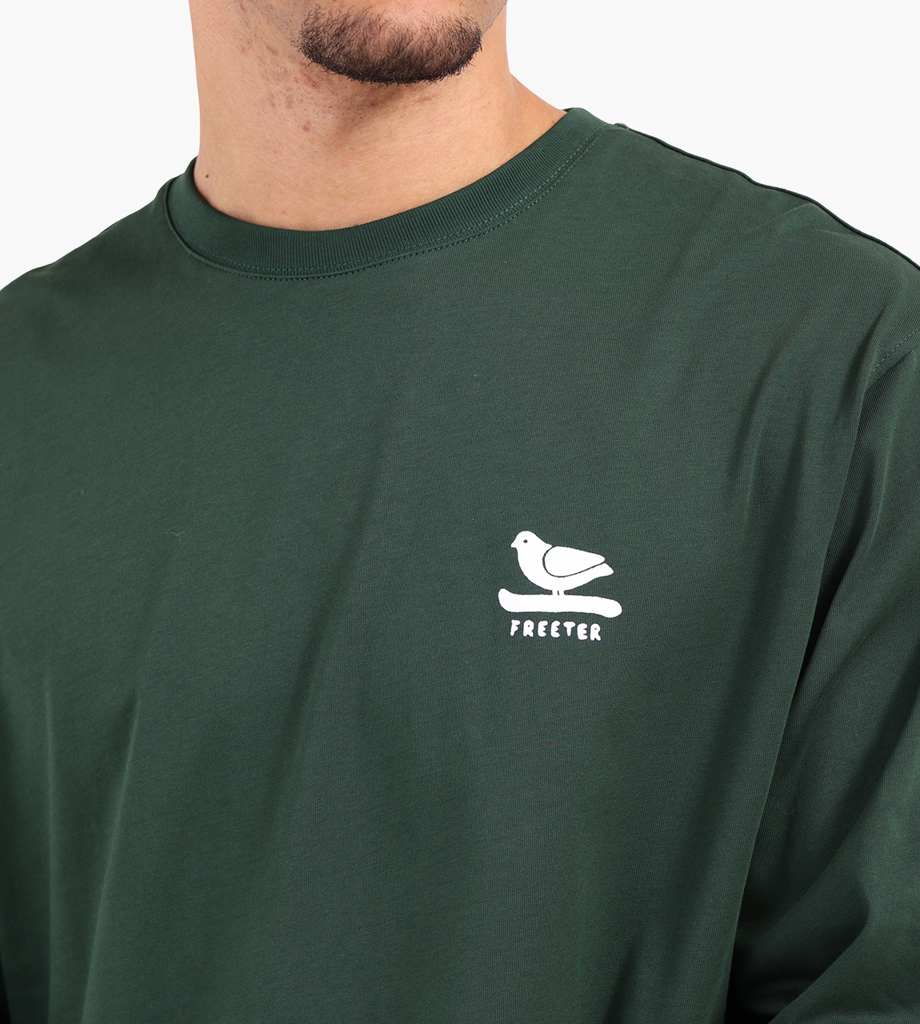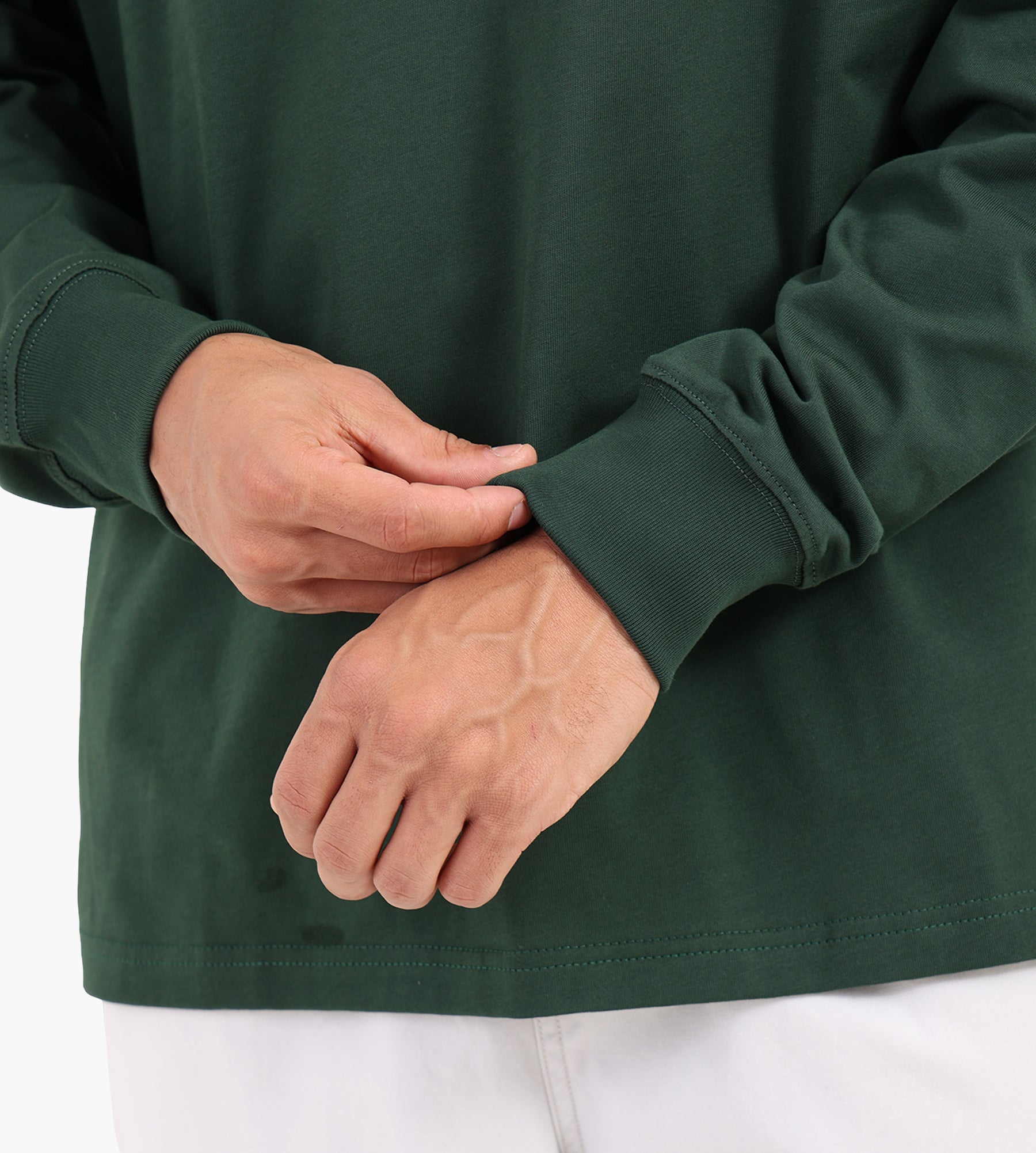 The Freeter Prose Longsleeve in green offers a clean, streamlined silhouette designed for easy layering or standalone wear. Its long-sleeve construction complements the understated green tone, making it a versatile addition to any wardrobe.