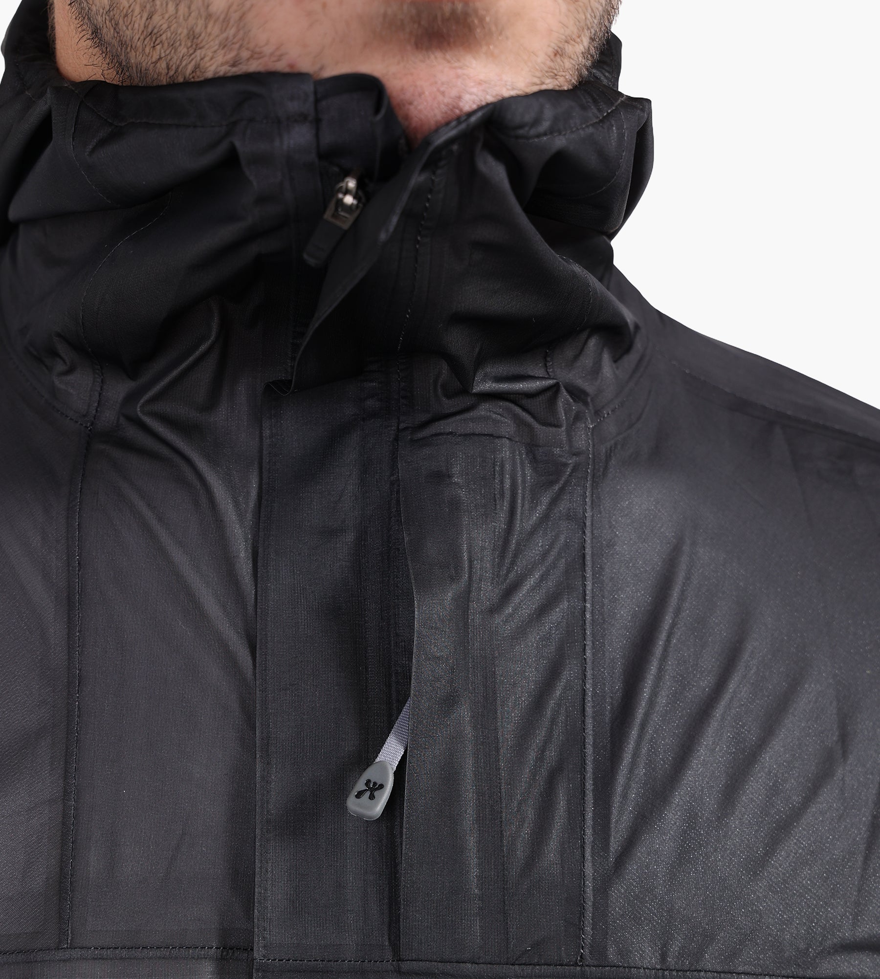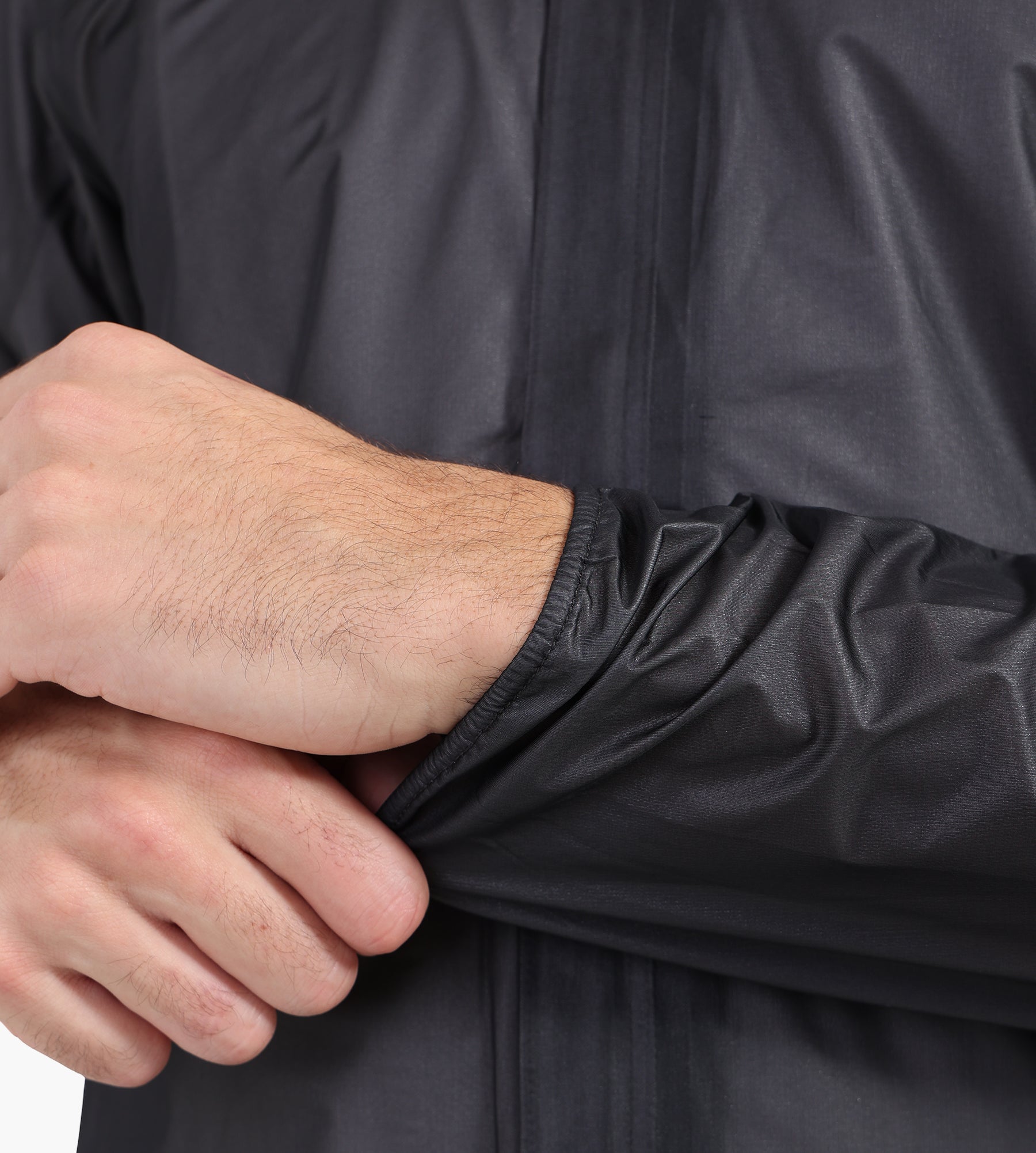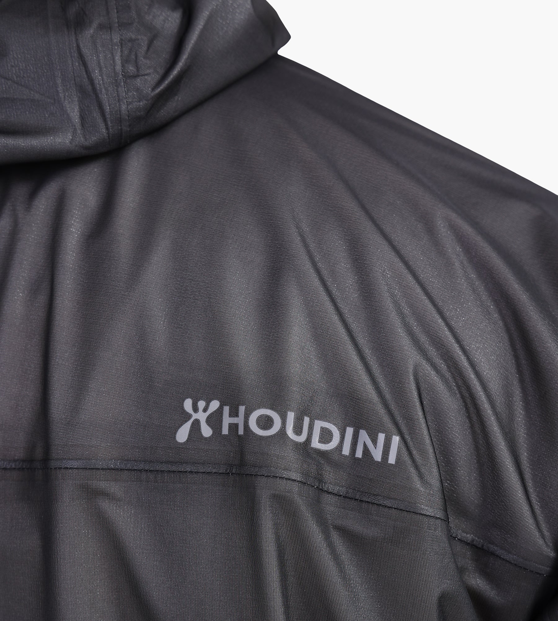 The Houdini Men's The Orange Jacket in True Black is crafted from Emergency 3L fabric, a 100% recycled polyester that combines ultralight durability with a smooth, technical feel. Engineered for mountain sports and high-output activities, its waterproof rating exceeds 20,000 mm H2O, while breathability reaches 46,000 g/m²/24 hrs, ensuring comfort in dynamic environments.