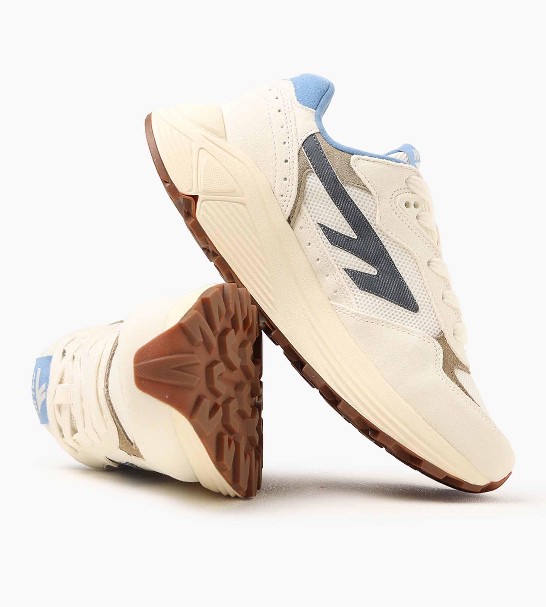 - Denim upper with beige contrasts