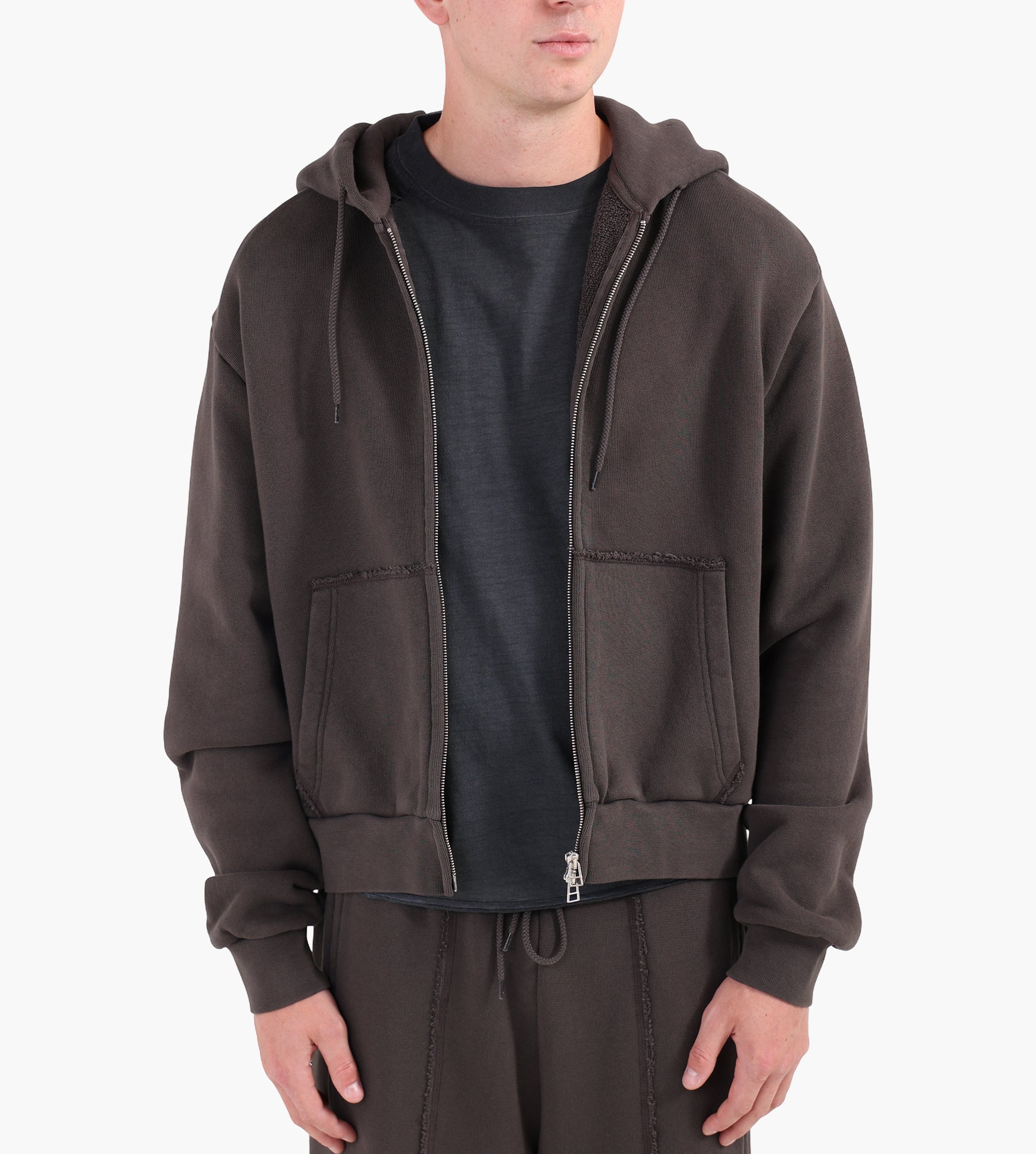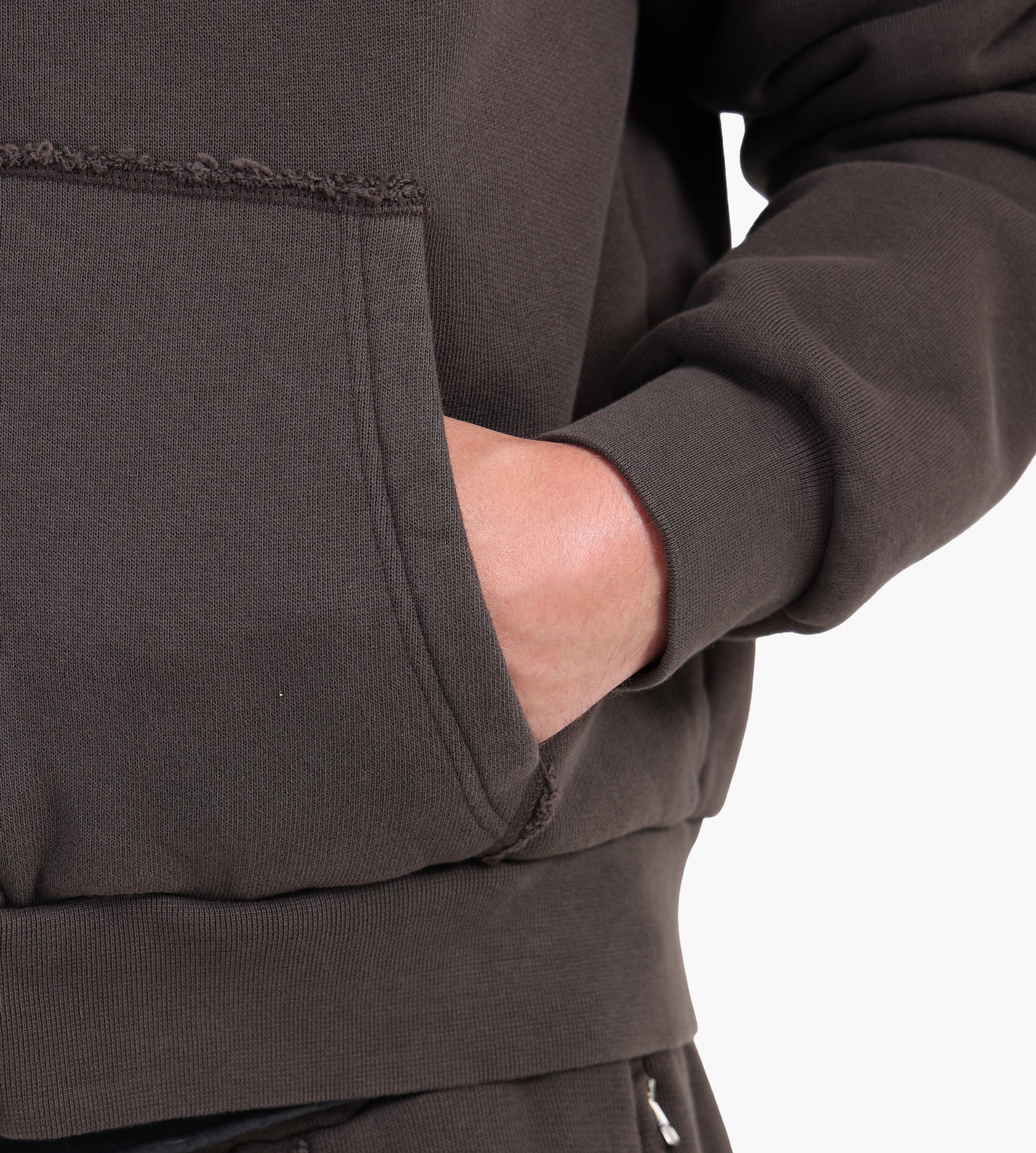The J.L-A.L Lave Hoodie in Terra Brown is crafted from a premium heavyweight cotton blend, offering a soft yet structured feel. Its oversized silhouette provides a relaxed drape, perfect for layering or standalone wear. A tonal kangaroo pocket and ribbed trims anchor the design, balancing utility with understated refinement.