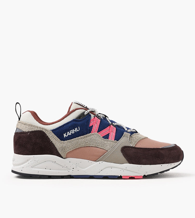 The Karhu Fusion 2.0 in Mole and Pink Lemonade combines a premium suede and mesh upper for breathability and durability. This retro-inspired sneaker is anchored by a cushioned midsole that delivers all-day comfort, while the unique colorway adds a subtle vibrancy to urban or trail settings.