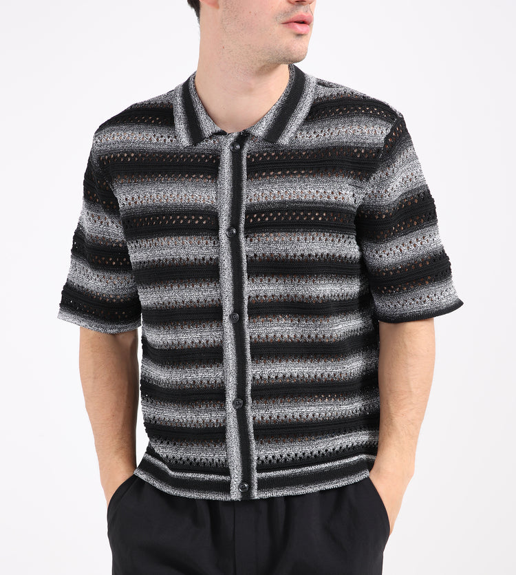 ACMH By Magic Castles Crochet Knit Shirt Black Gradient