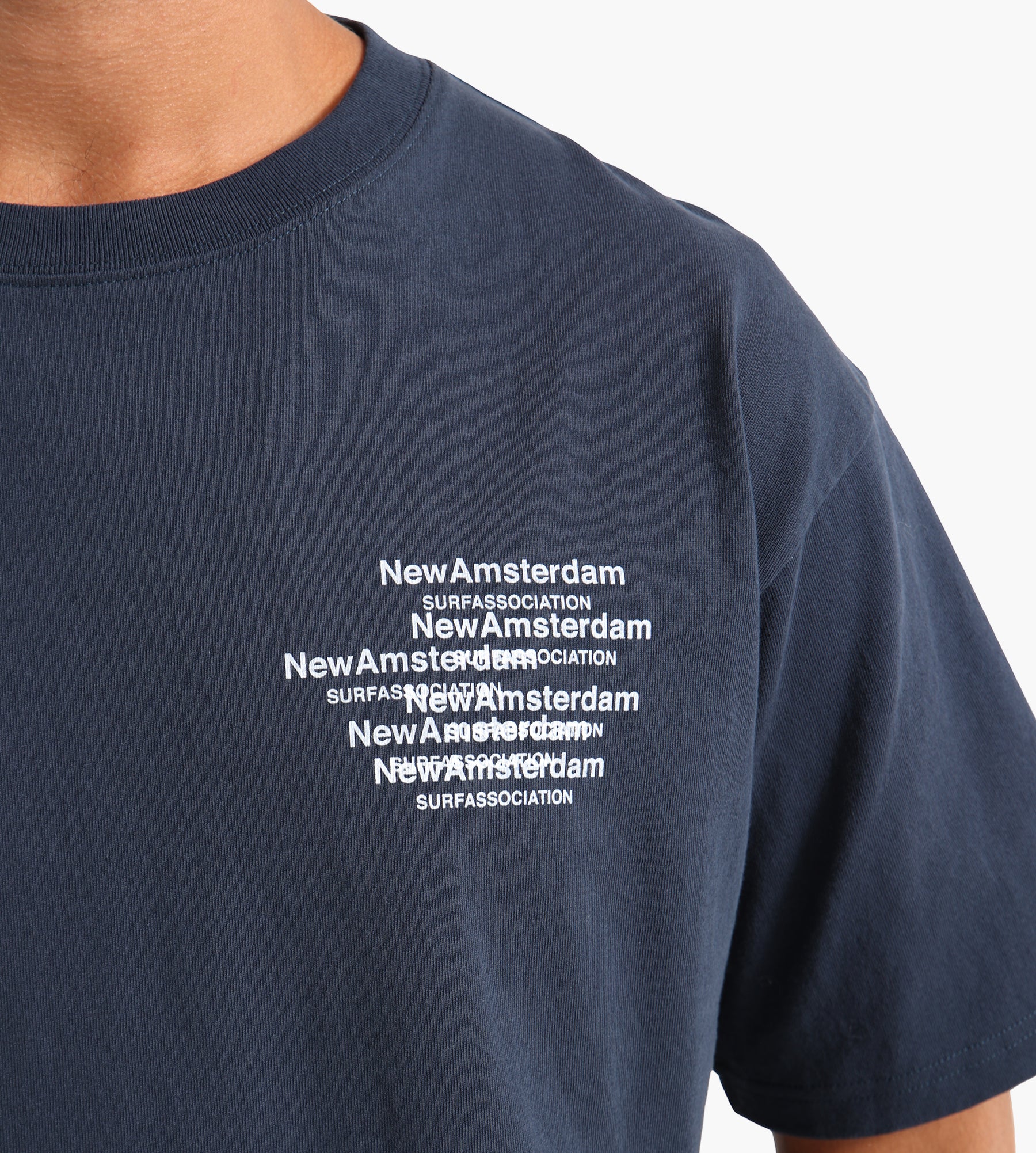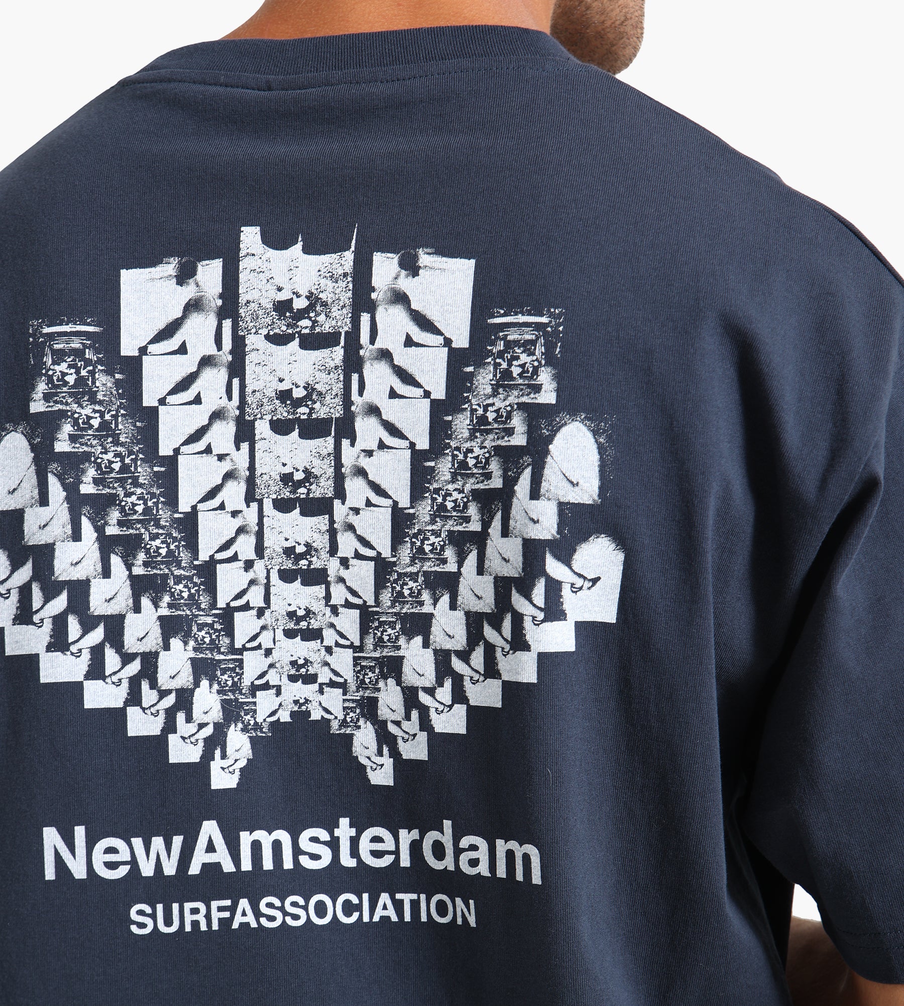 The New Amsterdam Surf Association Collage Tee in black is crafted from 100% cotton, offering a soft, breathable base for everyday wear. Its bold printed design draws inspiration from surf culture, blending graphic elements with a contemporary edge.