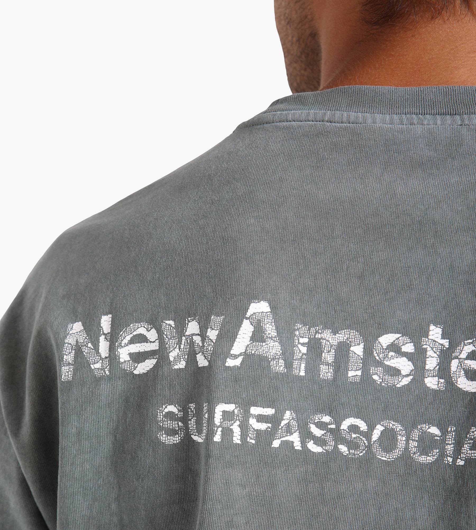 The New Amsterdam Surf Association Lace Print Logo Tee in Shark Green and White is crafted from soft, breathable cotton for all-day comfort. Its bold surf-inspired graphic anchors the design, while the lace print detailing adds a subtle nod to the brand's coastal roots. With a relaxed silhouette, it effortlessly transitions from laid-back beach outings to casual urban settings.