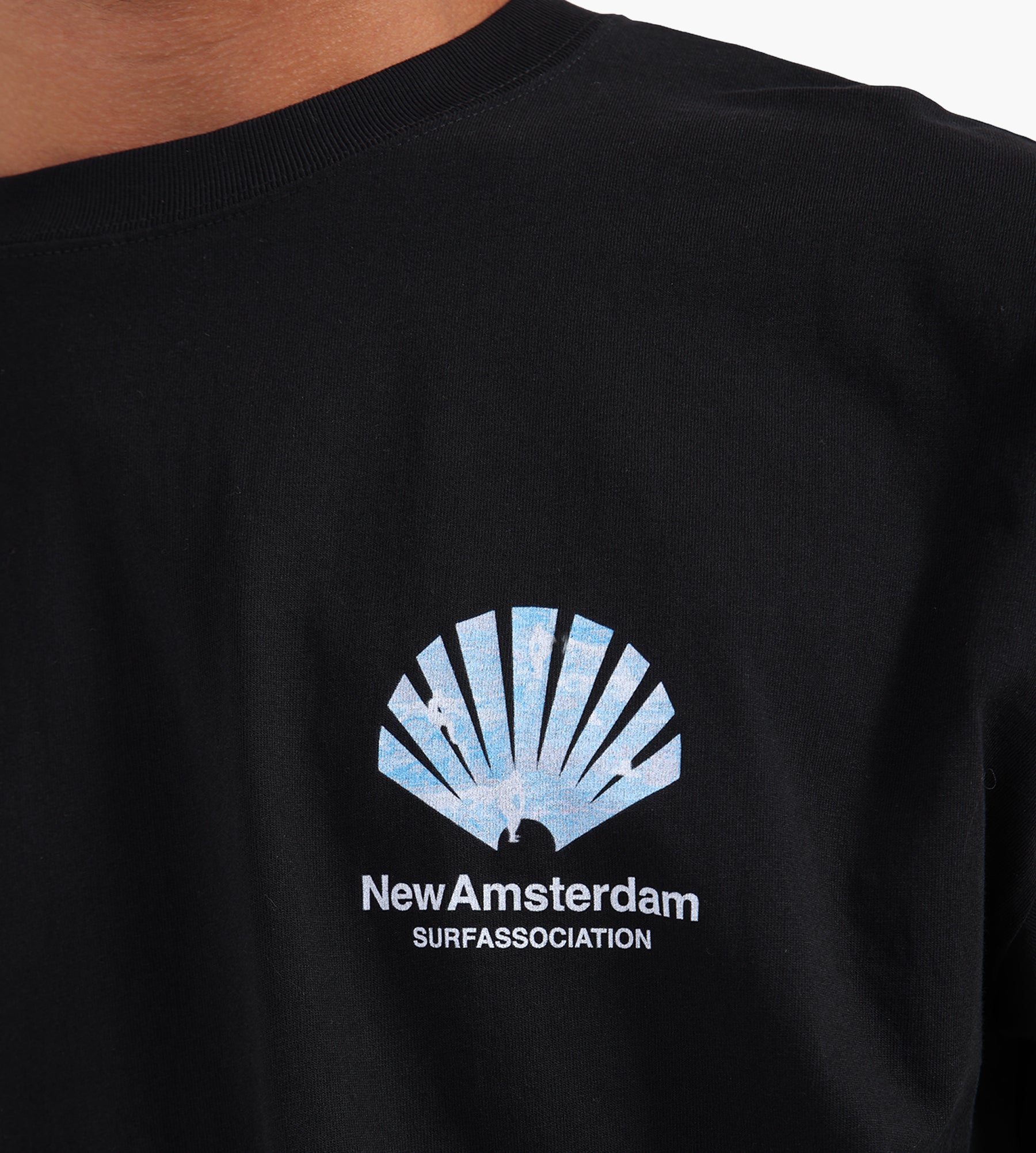 The New Amsterdam Surf Association Line Up Tee in Black pairs a minimalist silhouette with bold graphic detail. Its short-sleeved design features the signature "Line Up" print, channeling the brand's connection to surf culture through clean, contemporary lines.