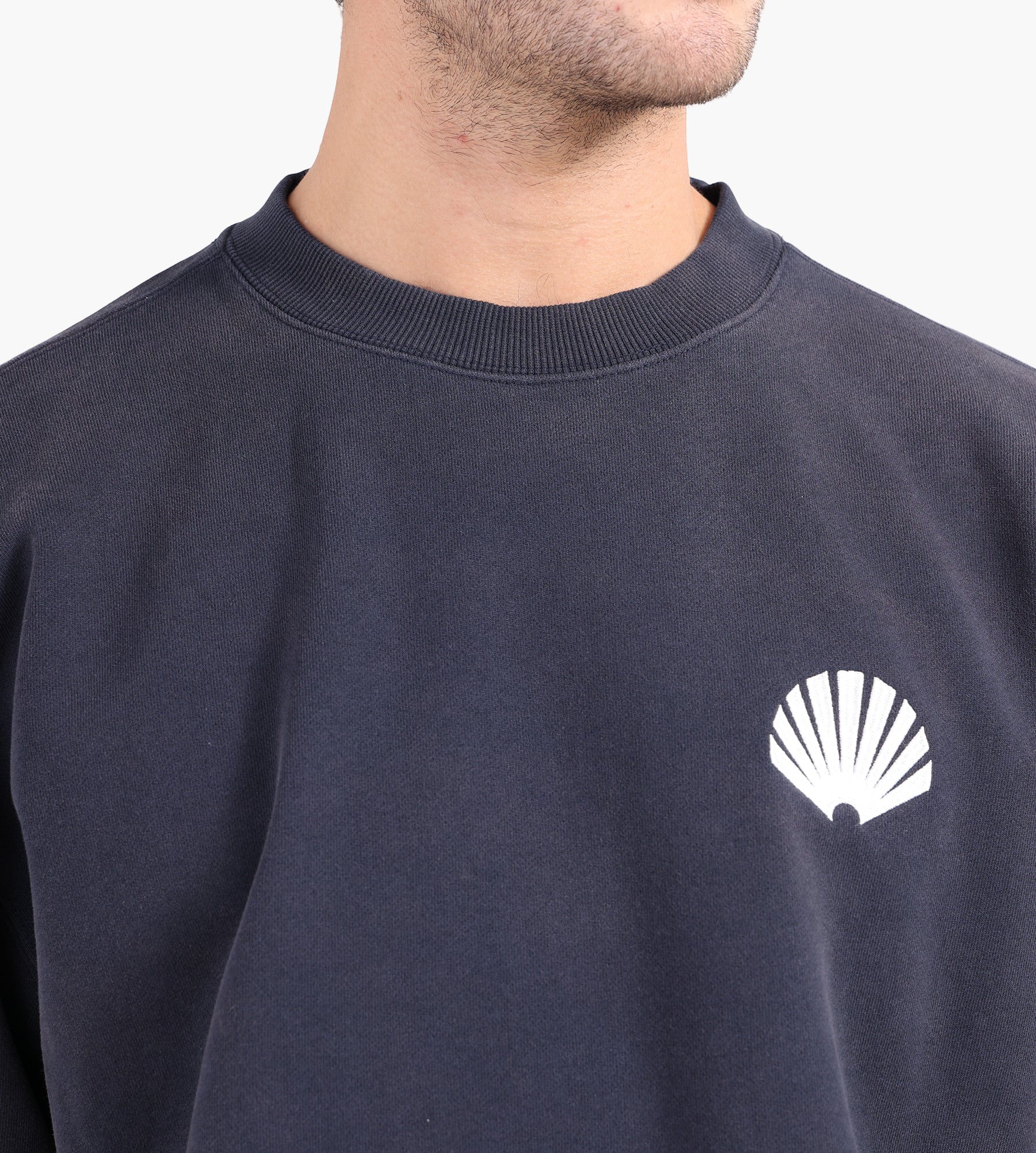 Featuring the brand's signature oyster logo embroidery on the chest and text logo embroidery on the back, this crewneck bridges understated design with bold identity. The relaxed fit ensures comfort and versatility, making it an ideal layer for cooler days or casual outings.