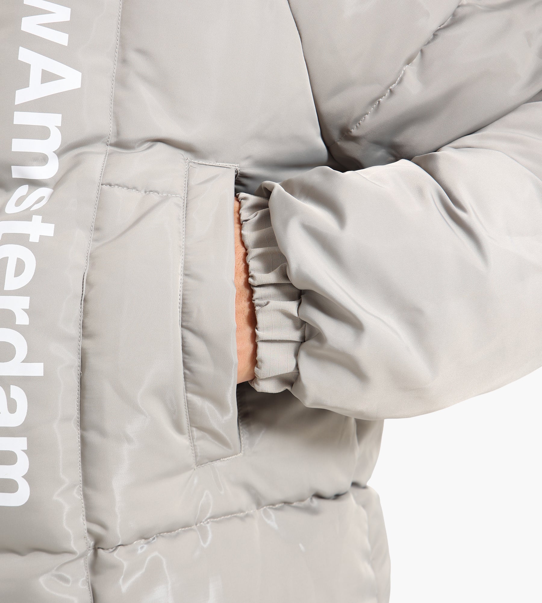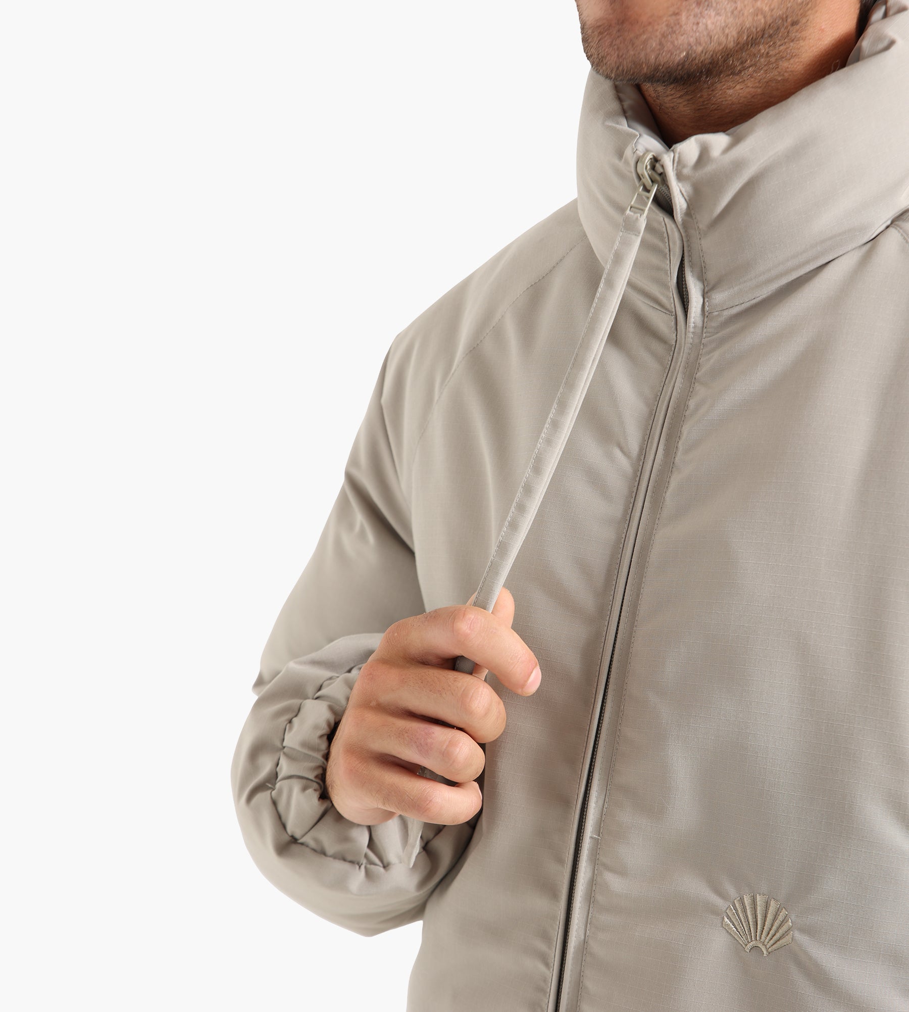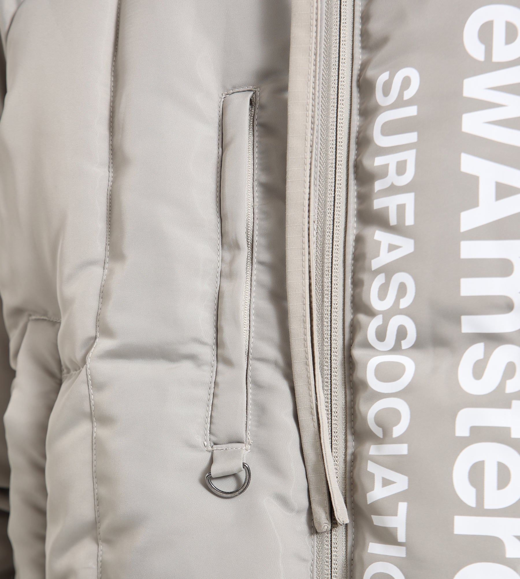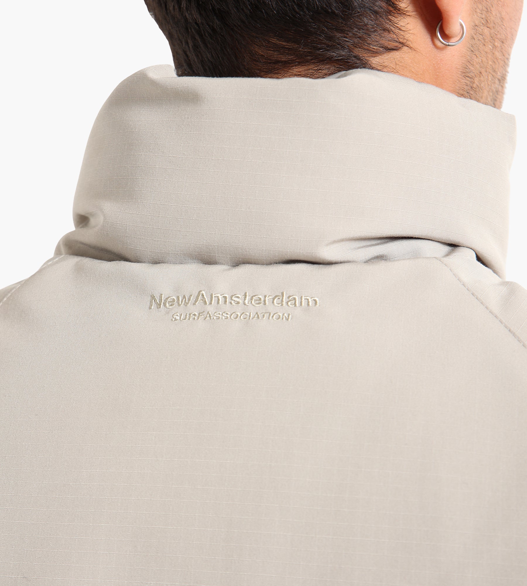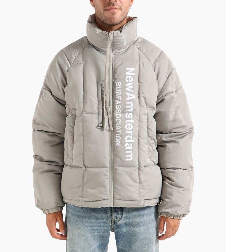 The New Amsterdam Surf Association Reversible Safety Jacket in Silver Sand offers a dual-sided design, allowing versatility in wear. Its clean lines and functional aesthetic echo the utilitarian roots of safety gear, while the muted hue ensures seamless integration into everyday wardrobes.