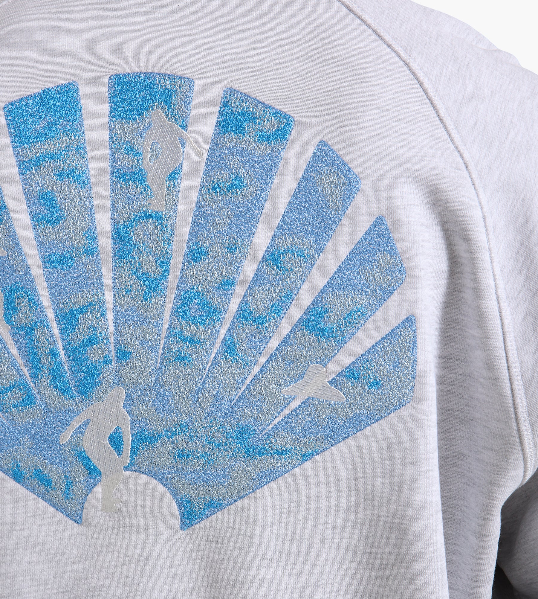 Featuring intricate logo embroidery with surfers and waves on both the front and back, this piece nods to coastal culture with understated elegance. Ideal for layering post-surf or casual city outings, the crewneck delivers a cozy feel and timeless versatility.