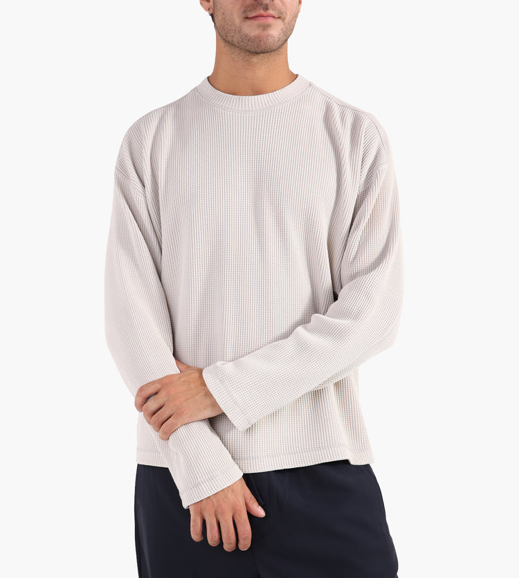 Designed with a relaxed unisex fit and hip-length cut, this crew neck longsleeve transitions seamlessly between casual outings and laid-back layering. The waffle knit construction ensures a comfortable, tactile feel against the skin, making it a versatile staple for year-round wear.