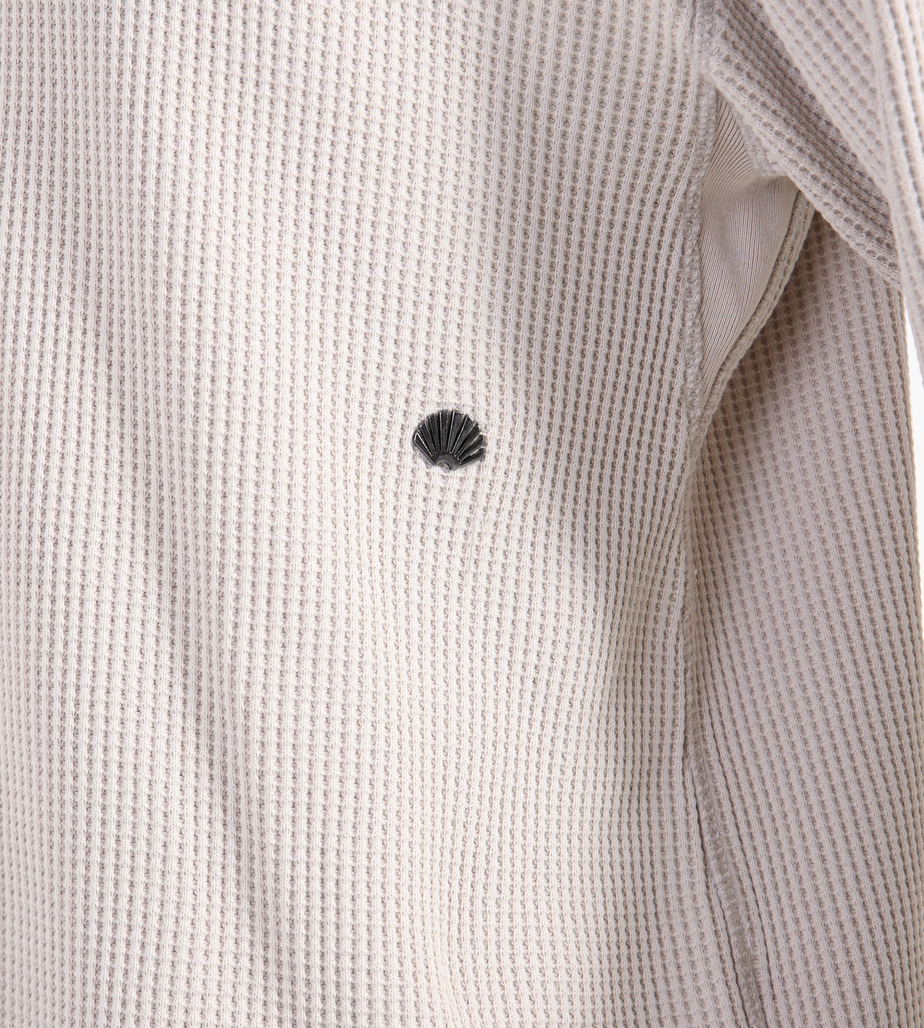 The New Amsterdam Surf Association Waffle Longsleeve in Washed Gray is crafted from a midweight waffle jersey blend of 60% cotton and 40% polyester. This textured knit enhances breathability while providing a soft, durable layer ideal for transitional weather. Its muted palette and subtle metal shell rivet detail nod to the brand's understated, utilitarian ethos.