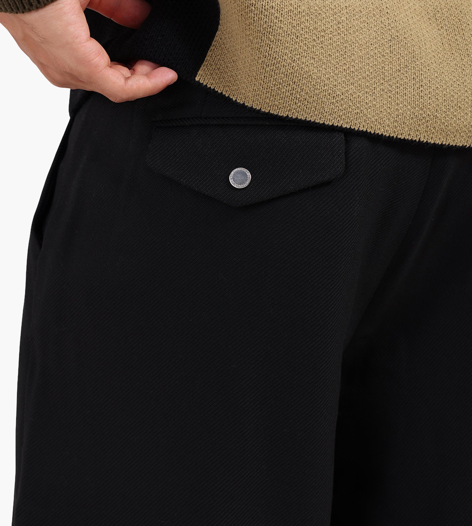 - Front welt pockets and back patch pocket