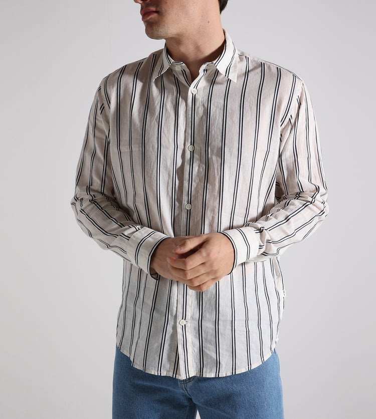 The NN.07 Freddy Shirt NO PKT 5324 in Black Stripe is a timeless, versatile shirt crafted from a soft, breathable blend of 71% cotton and 29% linen. The lightweight fabric features a smooth satin weave, giving the shirt a refined look with a subtle sheen. The absence of pockets (NO PKT) enhances its minimalist design, creating a clean and modern silhouette.
