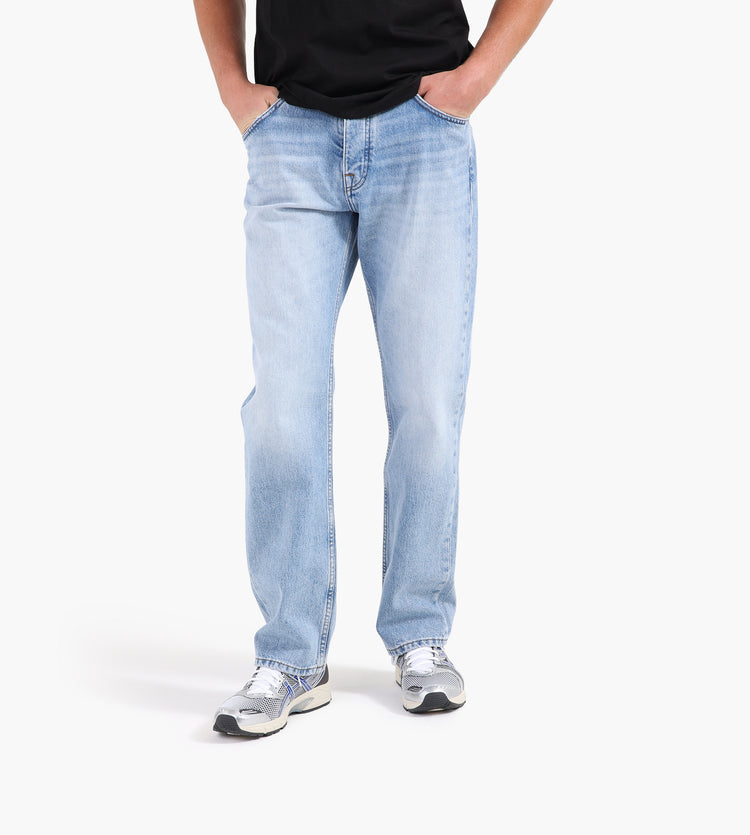The NN.07 Sonny Jeans 1882 in Light Blue Washed are crafted from premium cotton denim, combining a soft hand with a durable build. The lightly washed finish lends a lived-in character, while subtle whiskering and tonal stitching enhance the understated aesthetic.