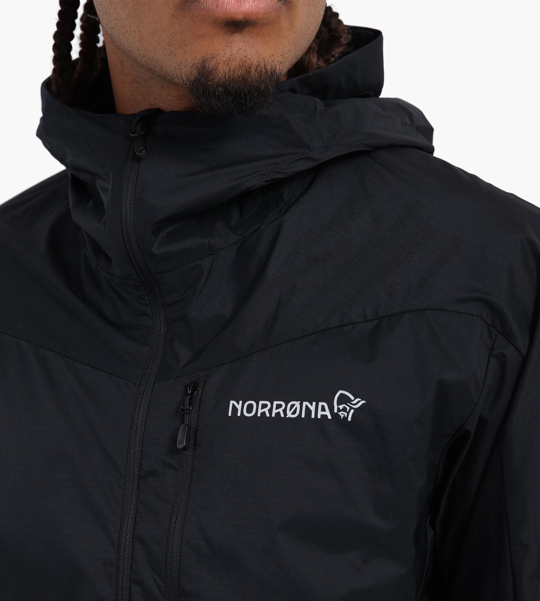 The Norrøna Falketind Aero60 Hood in Caviar is a lightweight, technical jacket designed for active outdoor pursuits. Featuring breathable and weather-resistant materials, it offers protection and comfort in variable conditions.