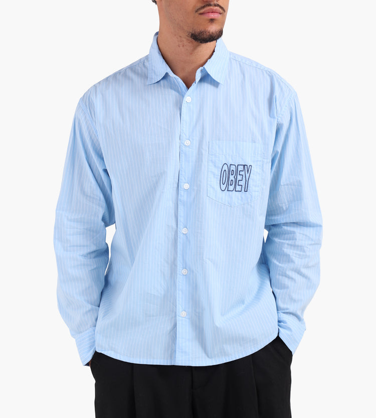 The Obey Bigwig Blueprint Long Sleeve Shirt in Cerulean Multi is crafted from 100% cotton, offering a breathable and lightweight feel. Its loose fit enhances comfort, while the classic pointed collar and full button closure anchor its timeless silhouette. A Fair Trade production process underscores the brand's commitment to ethical craftsmanship.