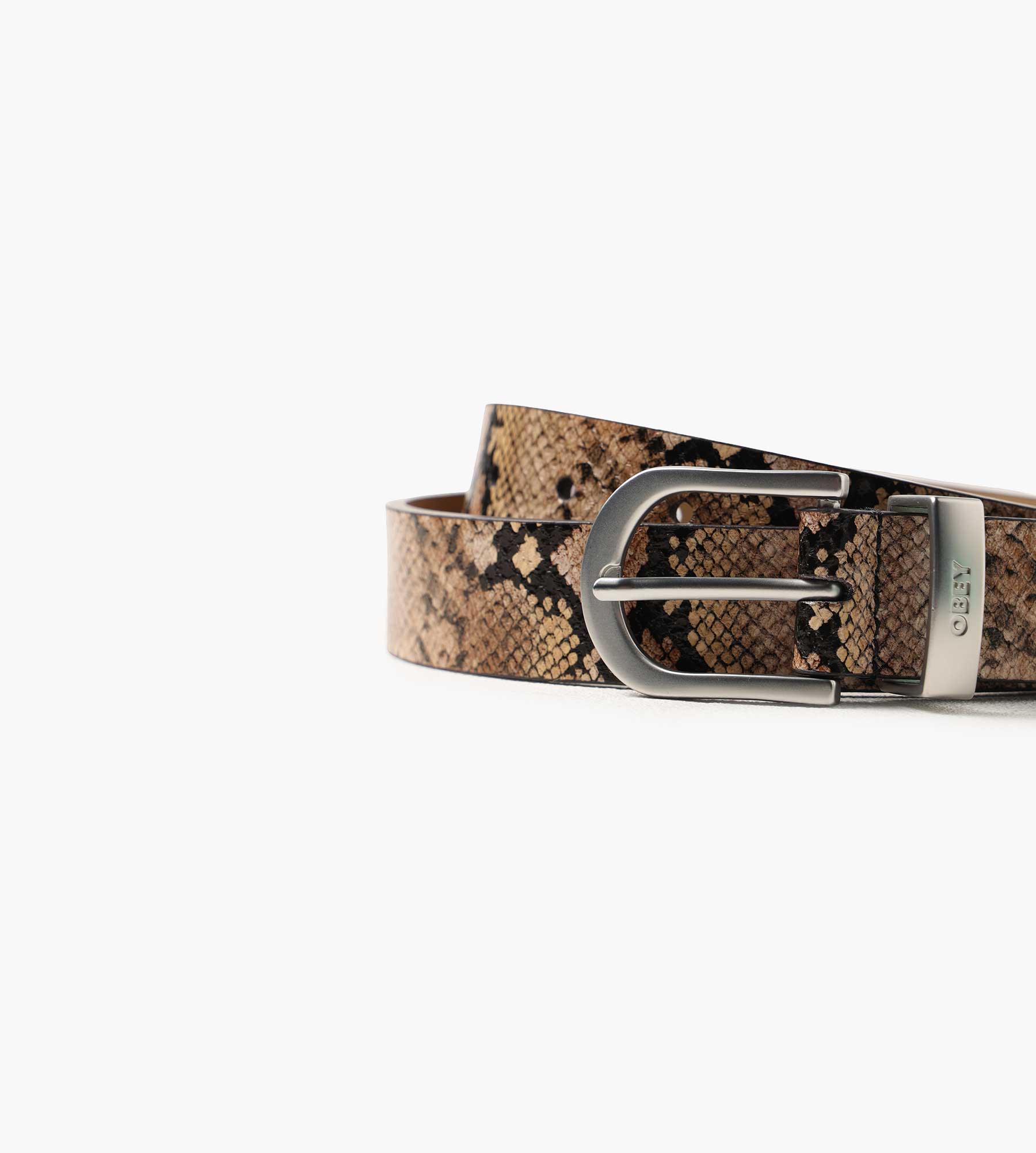 The Obey Classic Leather Belt Snake combines a refined aesthetic with durable materials. Crafted from 80% cowhide and 20% PU, this 1.25" wide belt features a snake-patterned finish that adds texture and depth to its classic silhouette. Its understated design makes it a versatile addition to any wardrobe.