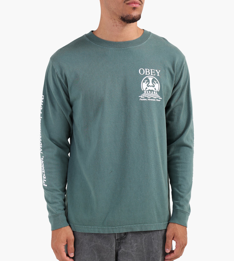 The OBEY Precision Pigment T-Shirt in Pigment Rainforest is made from 100% cotton, offering a breathable and durable wear. With an 8 oz weight, this tee strikes the perfect balance between substance and comfort, making it a reliable choice for daily use. A ribbed crew neck enhances its structure, while the pigment-dyed finish provides a rich, lived-in color that evolves over time.