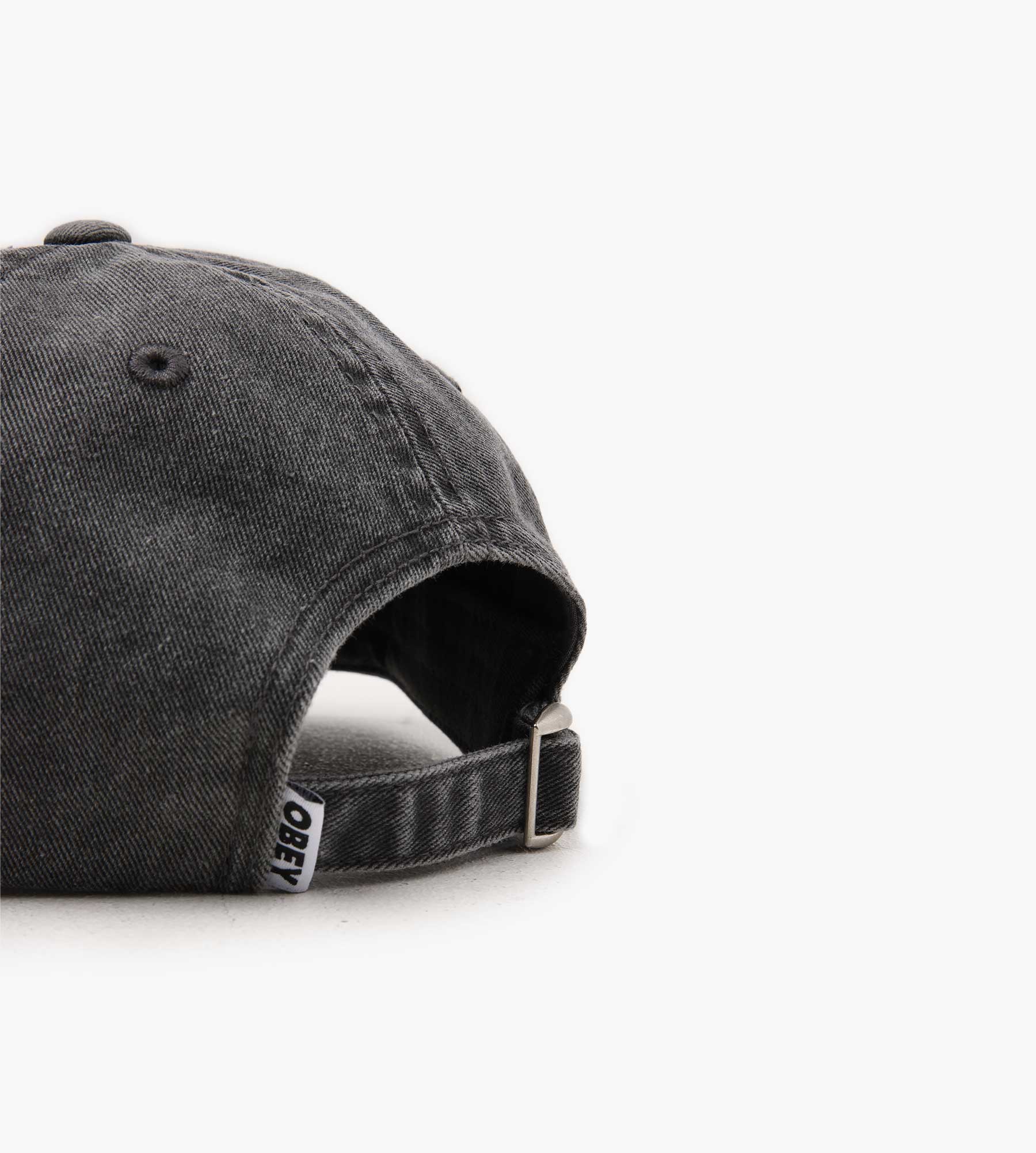 The Obey Pigment Bold 6 Panel Strapback Hat in Pigment Black is crafted from 100% cotton for a soft, breathable feel. Its low-profile, unstructured 6-panel twill construction delivers a relaxed fit, while the slightly curved bill ensures versatile sun coverage. An embroidered Obey logo on the front adds a subtle yet recognizable touch.