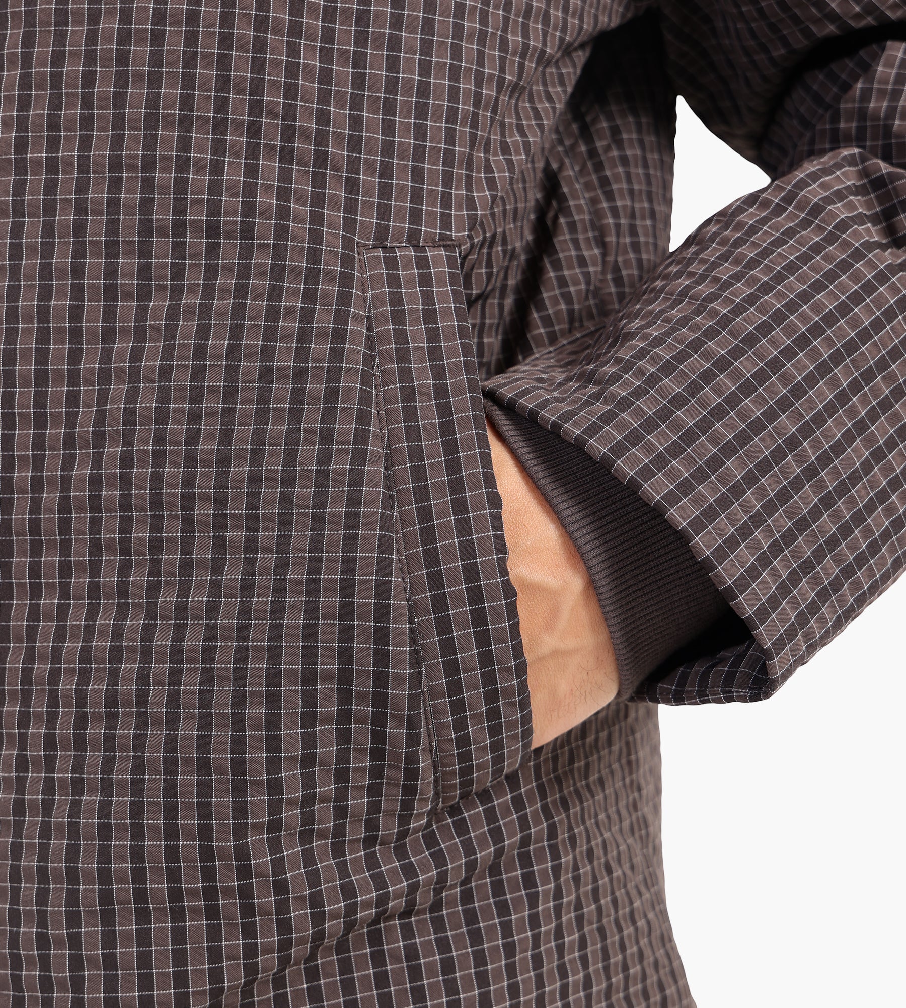 The OLAF Checked Padded Coach Jacket in Hot Fudge redefines the classic coach jacket for men with a warm, padded construction. It features a textured checked pattern, giving the piece a distinctive yet understated visual depth. The shell is crafted from a durable fabric blend, ensuring resilience and comfort for everyday layering.
