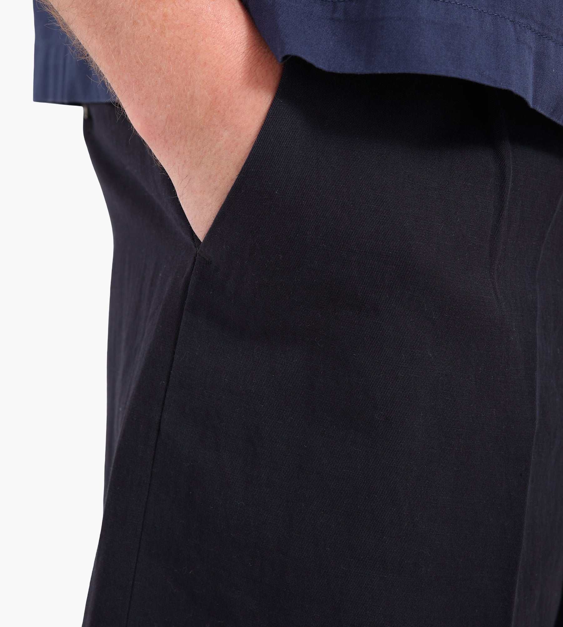 The OLAF Cotton-Linen Shorts in Navy are crafted from a premium blend of cotton and linen, combining durability with breathability for warm-weather wear. The fabric's lightweight texture ensures effortless movement, while the deep navy hue anchors the design in understated versatility.