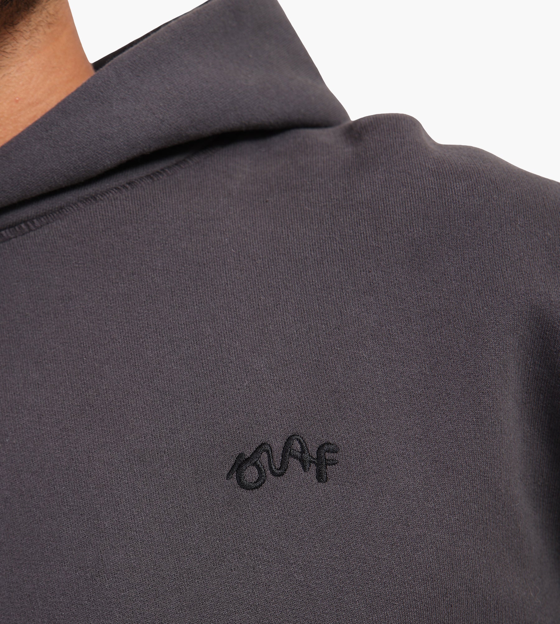 The OLAF Signature Boxy Hoodie in Charcoal is crafted from a soft fabric blend, delivering a relaxed silhouette with understated appeal. Its charcoal/gray hue enhances versatility, making it a staple for casual layering or off-duty looks. The boxy cut provides ample room for movement, ensuring comfort throughout the day.