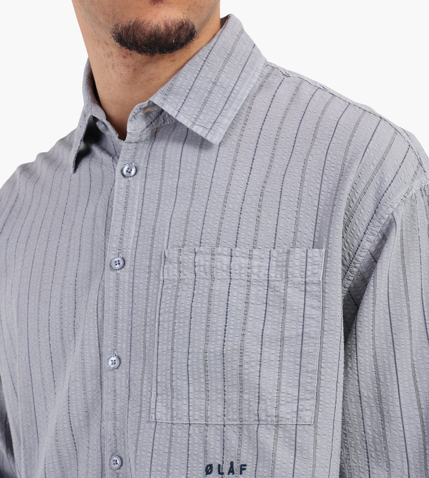 OLAF Striped Boxy Shirt Navy