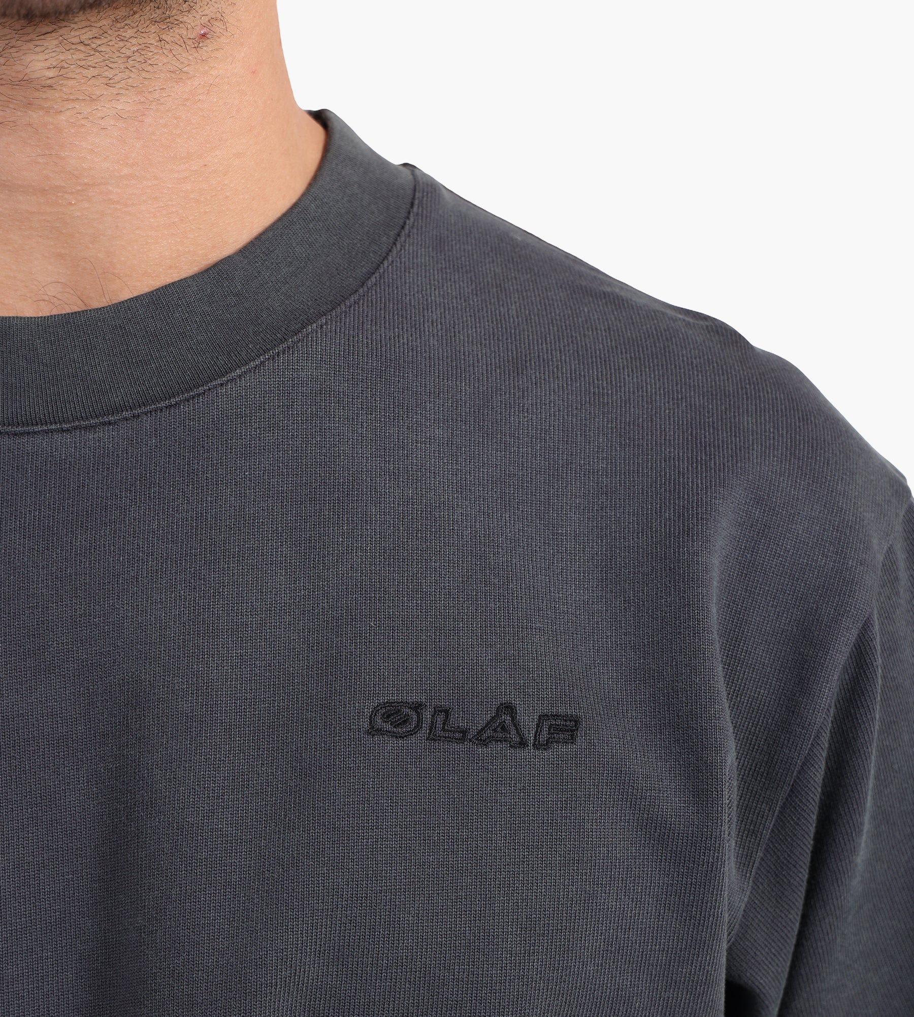 The OLAF Washed Studio Tee in Charcoal is crafted with meticulous attention to detail, offering a relaxed silhouette defined by its oversized fit and boxy cut. Made from a soft cotton blend, the fabric undergoes a special wash treatment that enhances its texture and imparts a lived-in feel, perfect for everyday layering.