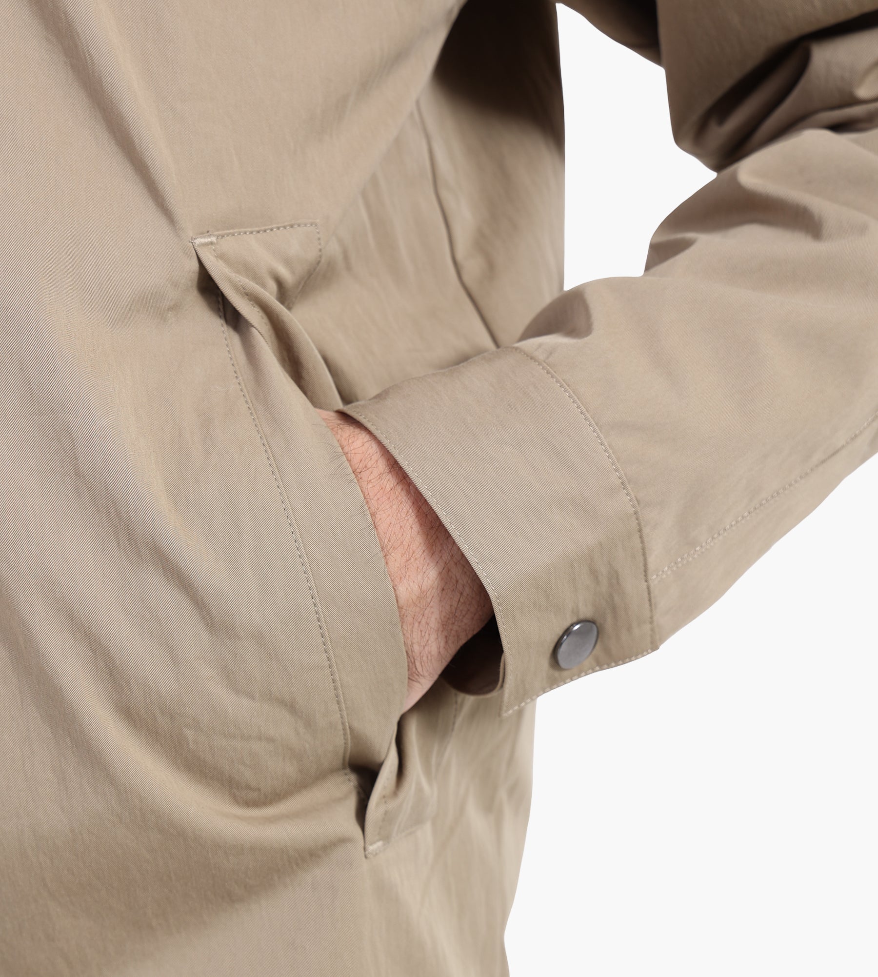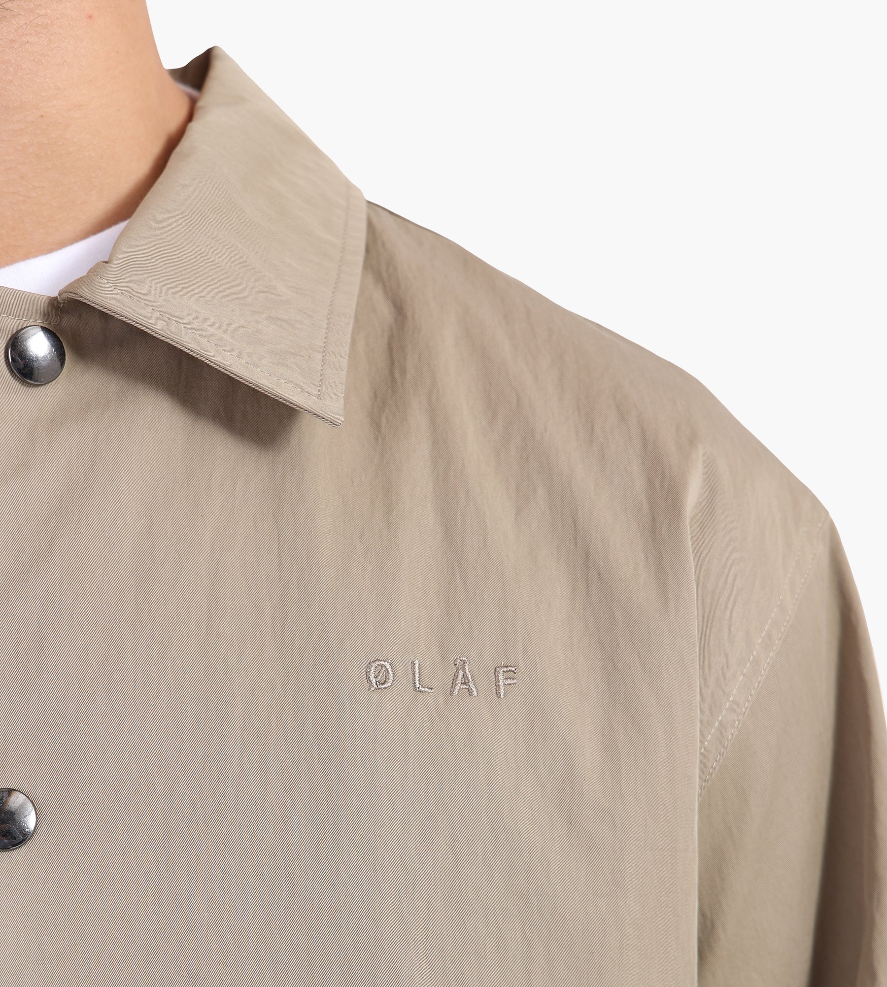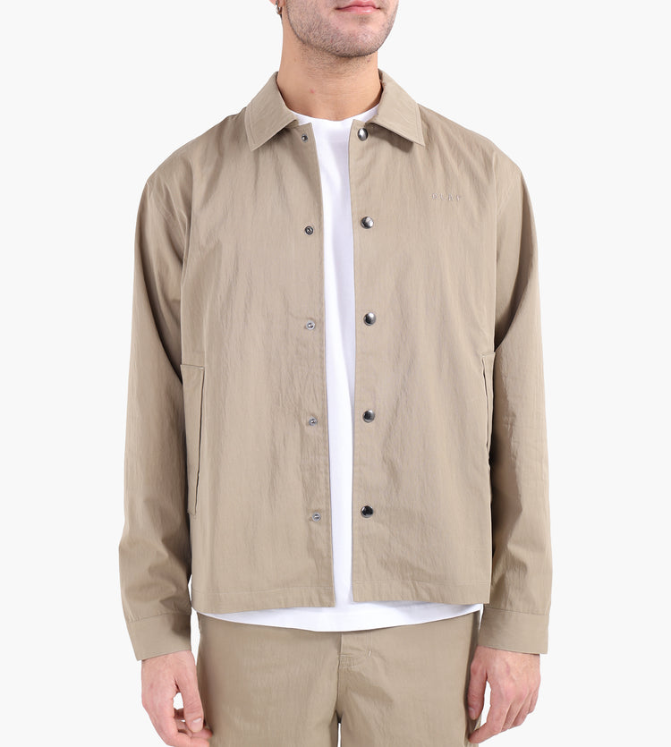 The OLAF Hussein Workwear Coach Jacket in Treehouse combines 65% cotton and 35% polyamide for a durable yet breathable layer. This reimagined take on the classic coach jacket merges a utilitarian workwear aesthetic with refined tailoring, offering a versatile piece for daily wear.
