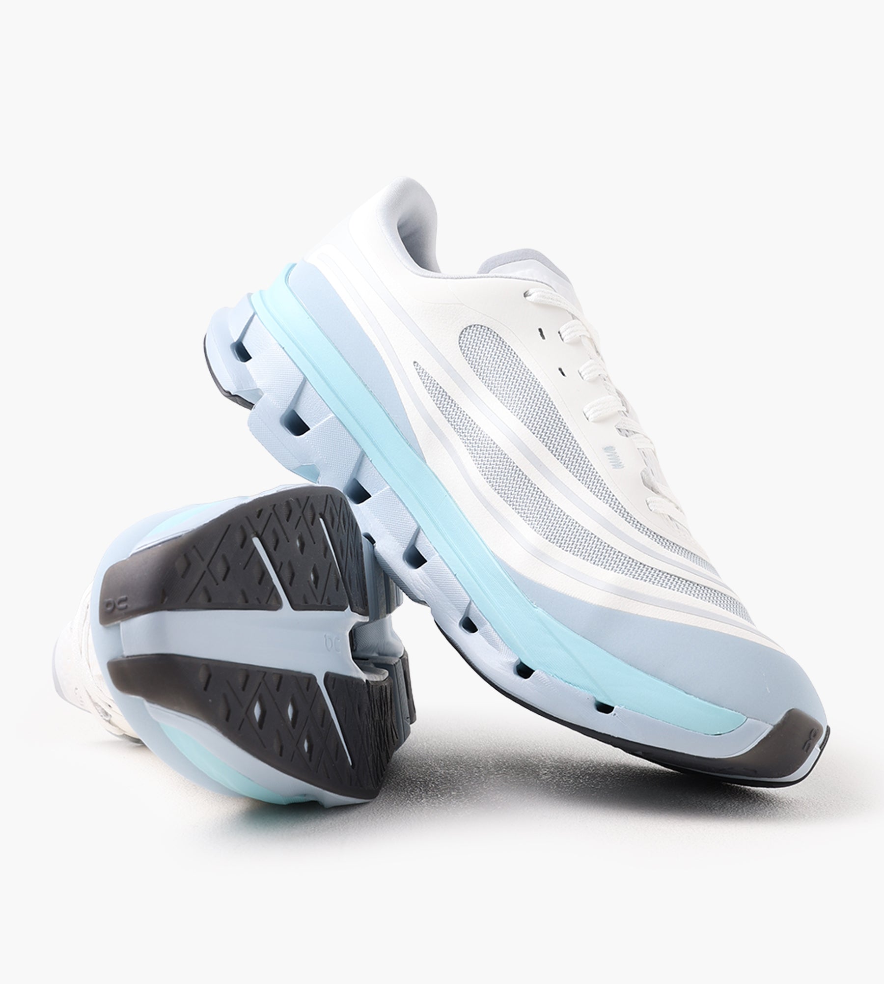 The On Cloudflow 5 AD in Hail/White redefines women’s performance running shoes with a lightweight mesh upper enhanced by synthetic overlays and 3D tactile prints. Engineered for seamless transitions, the Helion™ HF foam midsole delivers superior comfort and energy return, while the CloudTec® cushioning system ensures every stride is smooth and responsive.