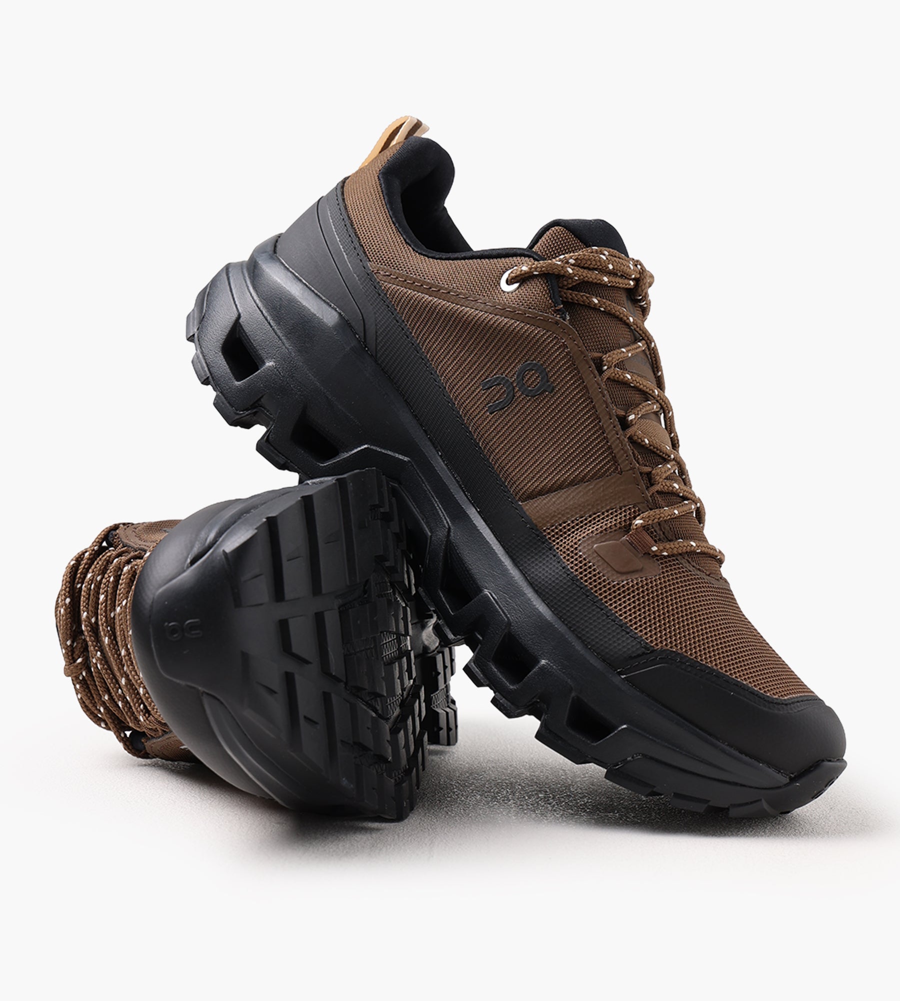 The On Cloudrock Low Waterproof Hiking Shoes in Earth/Black feature a 100% recycled polyester upper combined with a fully waterproof membrane, offering reliable weather protection without compromising sustainability. Helion™ superfoam in the midsole absorbs impact for all-day comfort, while the Missiongrip™ outsole ensures secure footing across mixed terrain, from rocky trails to muddy paths.