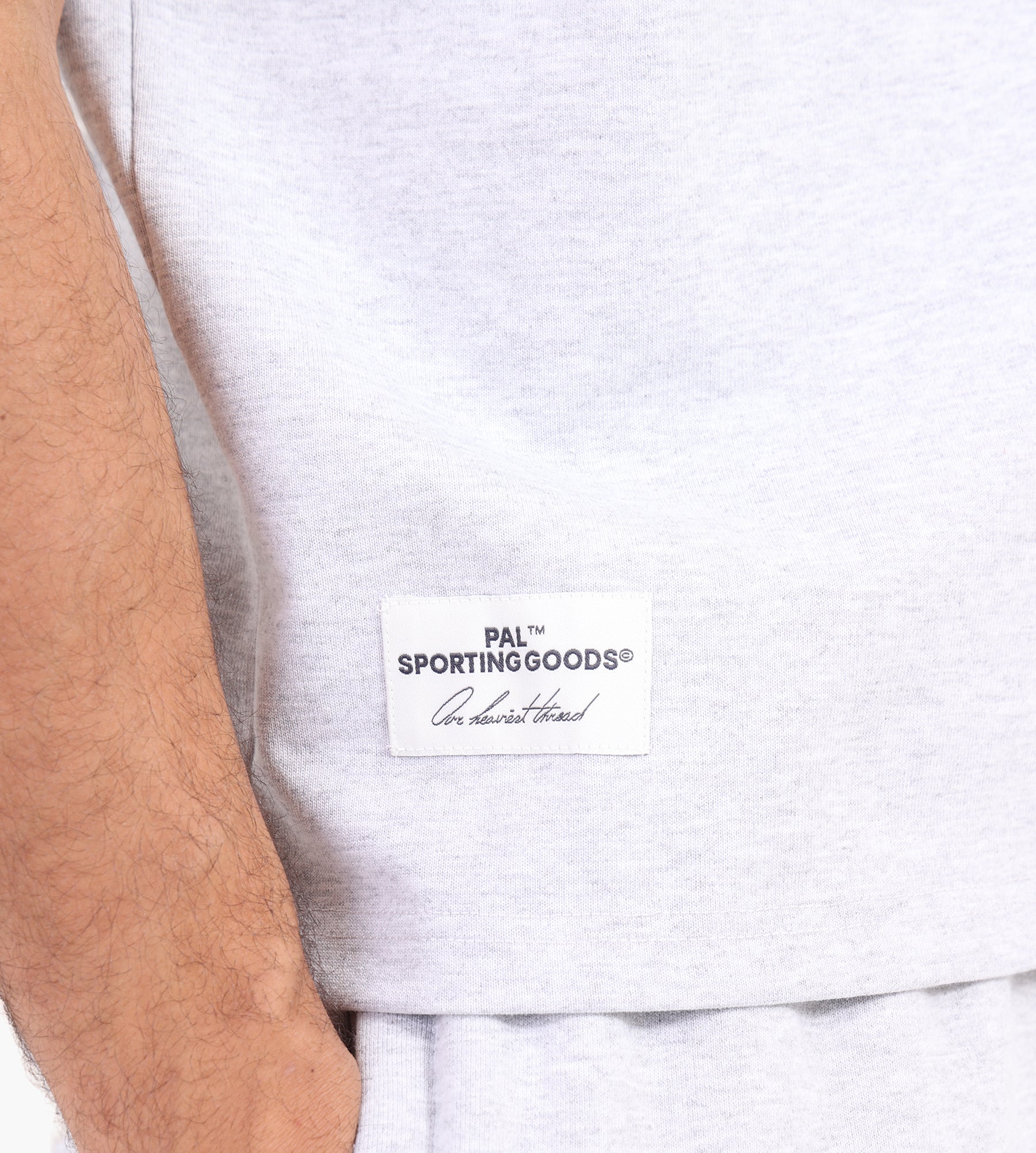 The PAL Sporting Goods Cyr T-shirt in Light Gray Marl is crafted from a robust 380gsm blend of 60% cotton and 40% polyester, delivering a dense, heavyweight feel. Its tightly knit fabric is engineered to adapt with wear, gradually shaping to your form while maintaining its structure. True-to-size proportions ensure a reliable fit from the first wear.