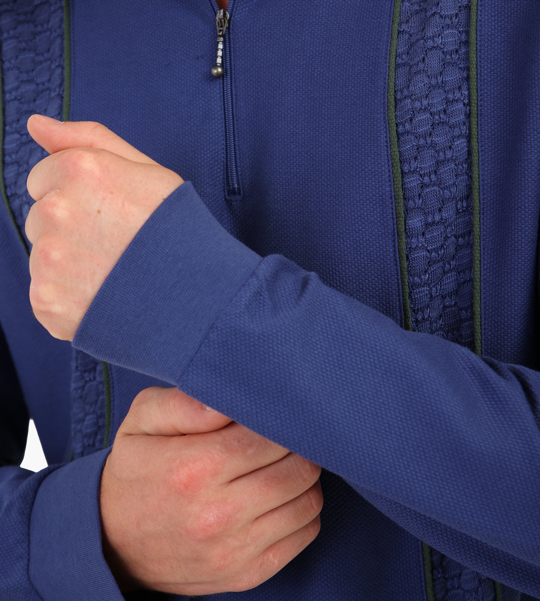 - Classic collar with half-zip closure
