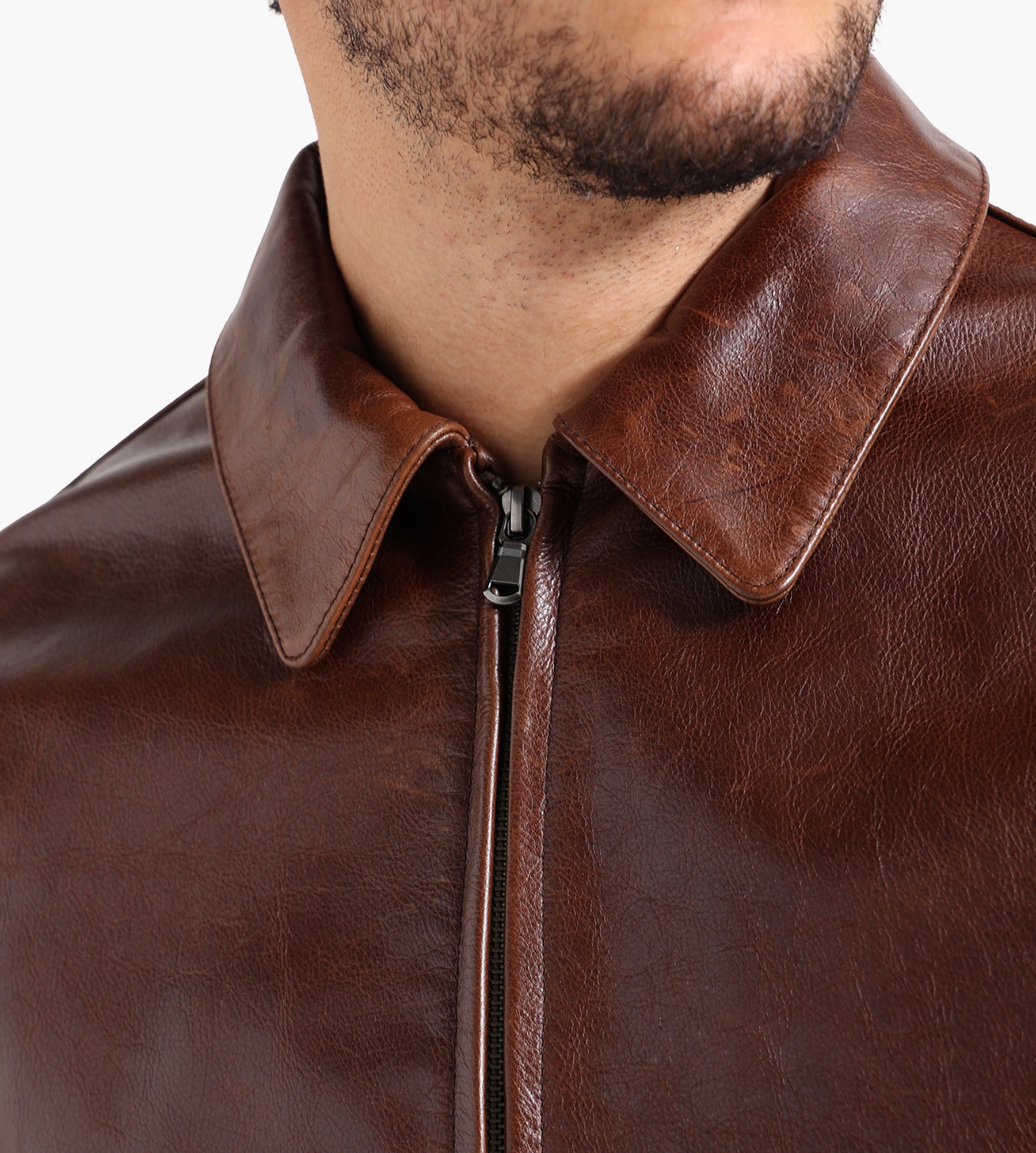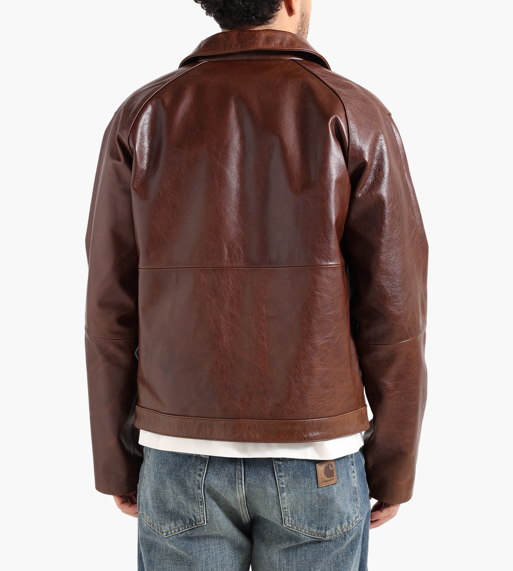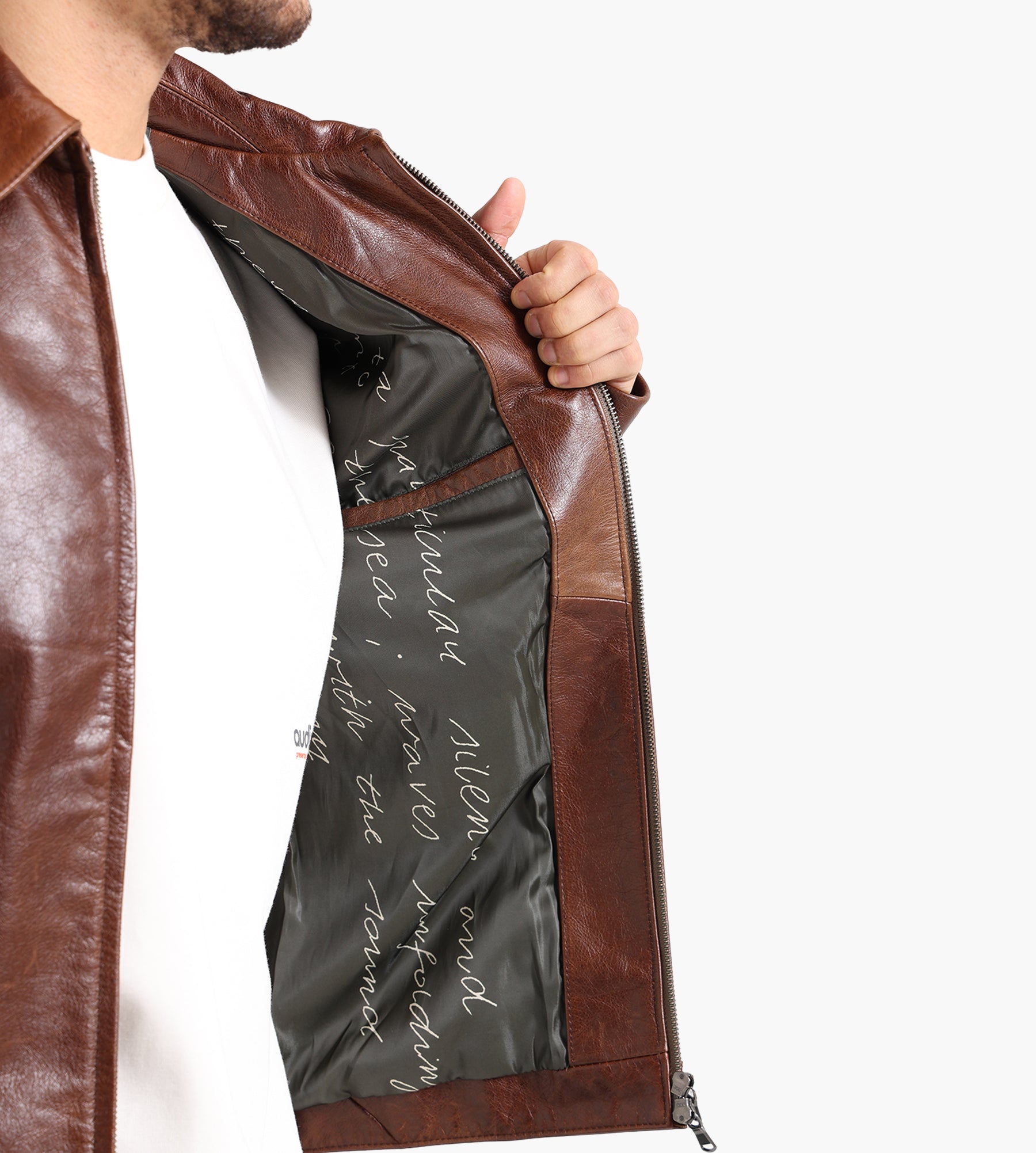 The Pinkorange Leather Jacket Brown brings a bold, clean-cut silhouette to a wardrobe essential. With subtle detailing and a focus on high-quality construction, this piece is a fresh take on the classic leather jacket.