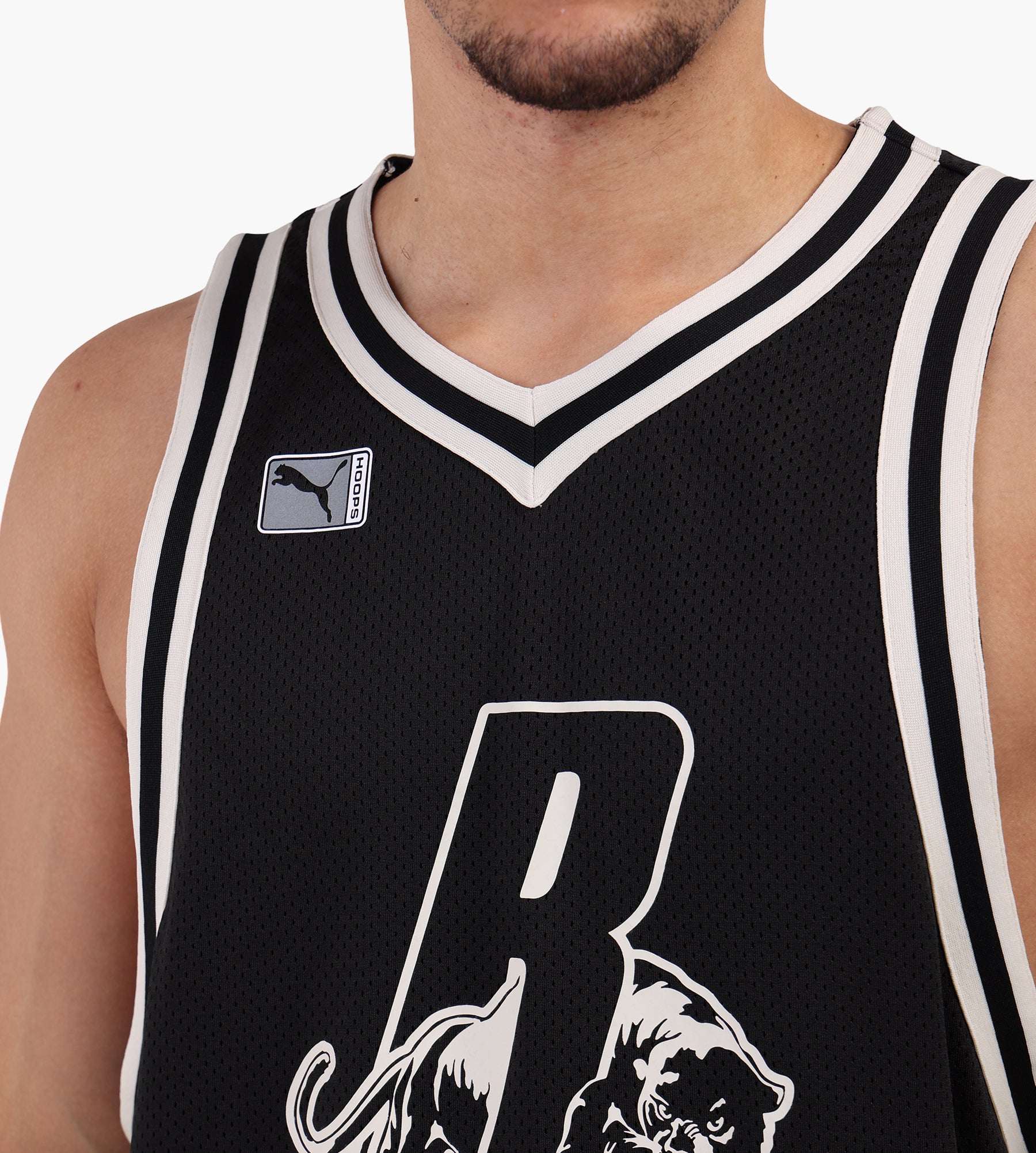 The Puma x Represent Jersey in Puma Black merges athletic function with streetwear sensibility. Engineered from a lightweight, breathable fabric, it ensures optimal airflow and unrestricted movement, making it ideal for active pursuits or everyday wear.