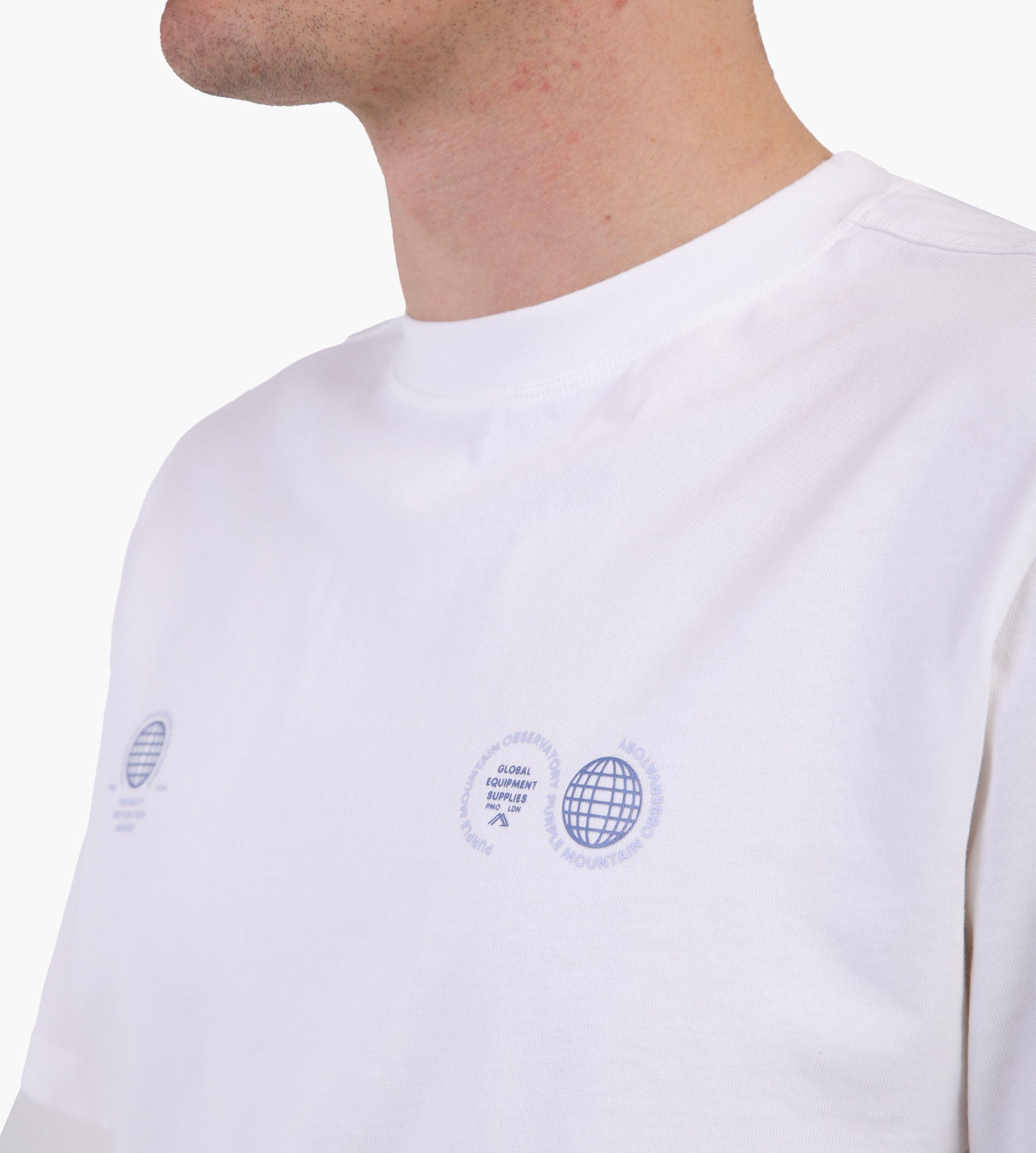 Purple Mountain Observatory Globe Tee White Blue