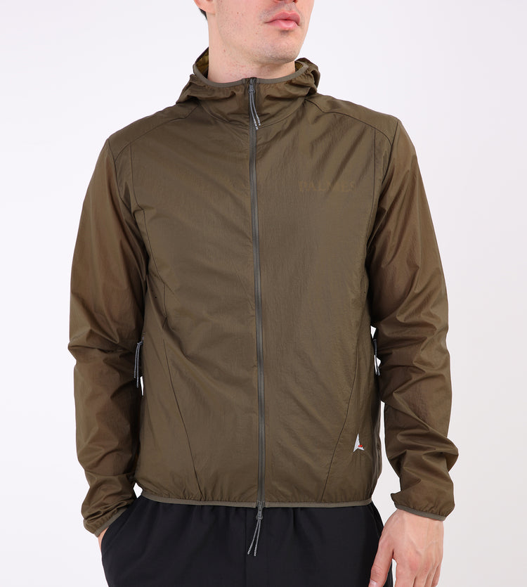 The ROA Packable Wind Jacket in Dark Olive is a lightweight windbreaker made from water-repellent nylon. This jacket features ventilation details and is designed for easy packing and storage.