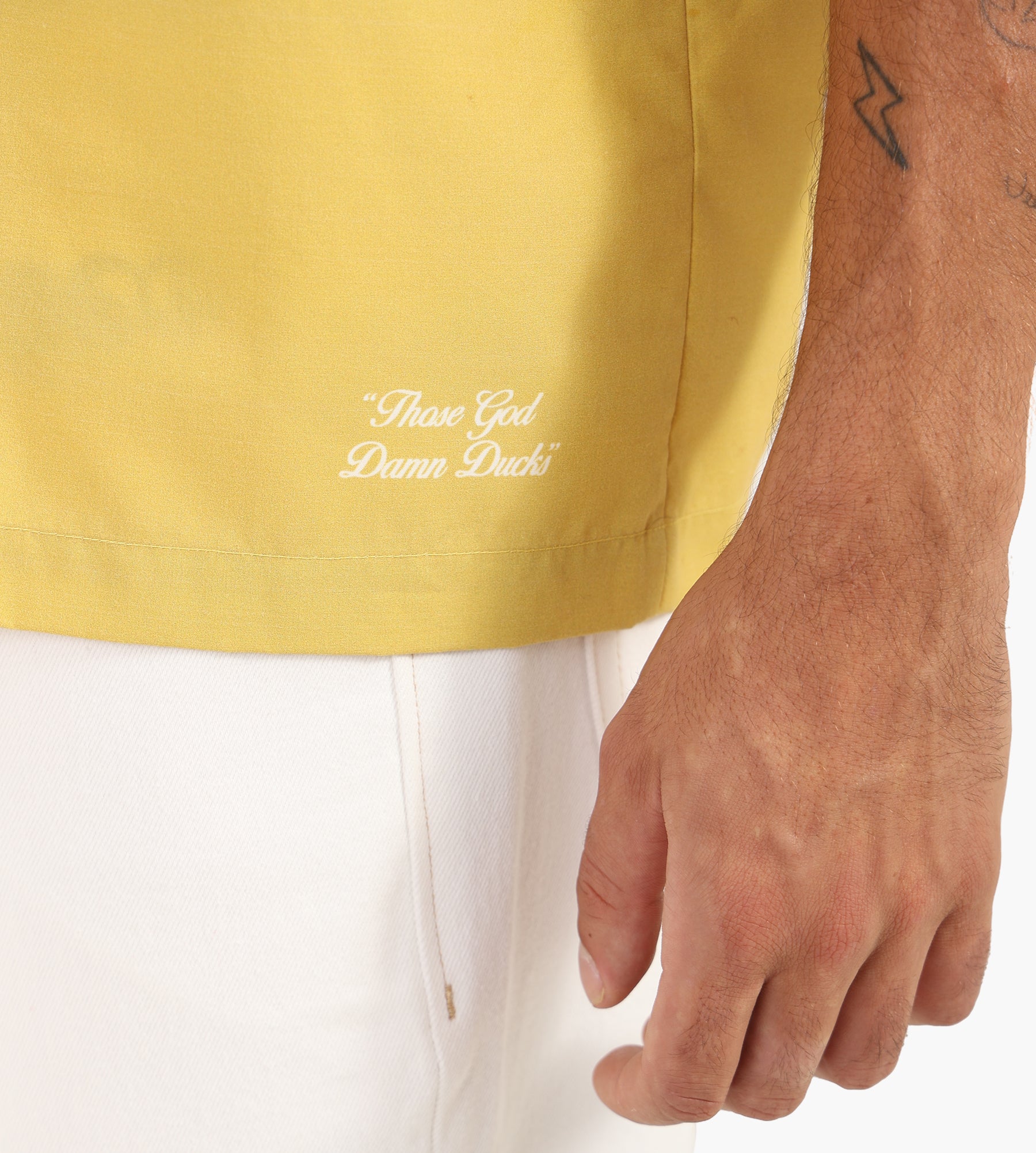 The Sabbatical Ducks Shirt in True Meadow is a button-up crafted with meticulous attention to detail. Its vibrant yellow base is brought to life by a playful yet refined duck print, evoking a sense of vintage charm. Thoughtfully constructed, this piece balances heritage inspirations with modern sensibilities, making it a versatile addition to any wardrobe.