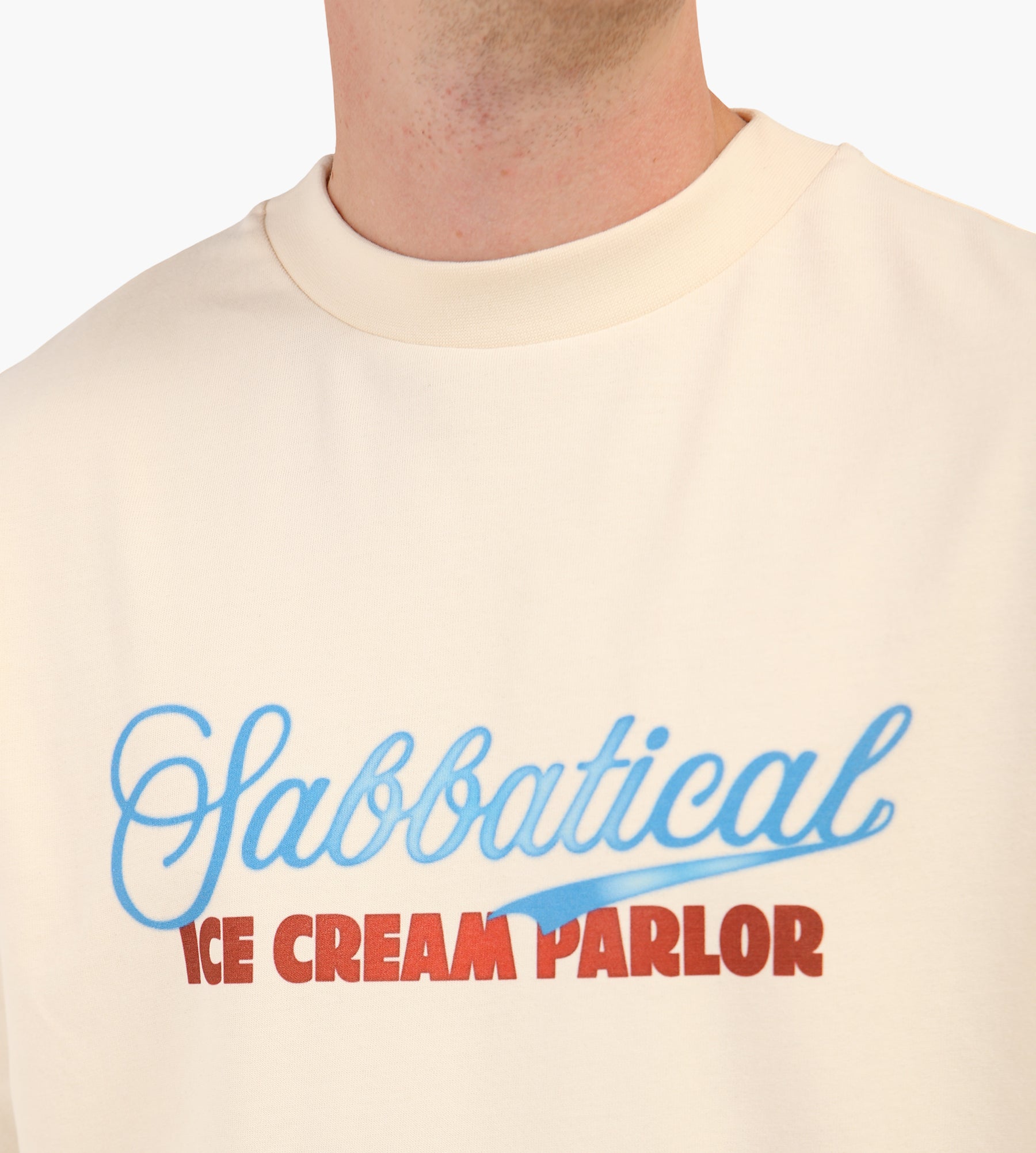 The Sabbatical Script Logo T-Shirt in Vanilla Green offers a minimalist take on everyday essentials. Crafted in a soft, breathable knit, its neutral beige tone pairs effortlessly with any wardrobe. The clean script logo across the chest nods to Sabbatical's understated aesthetic, making it a versatile choice for relaxed outings or layering under tailored pieces.