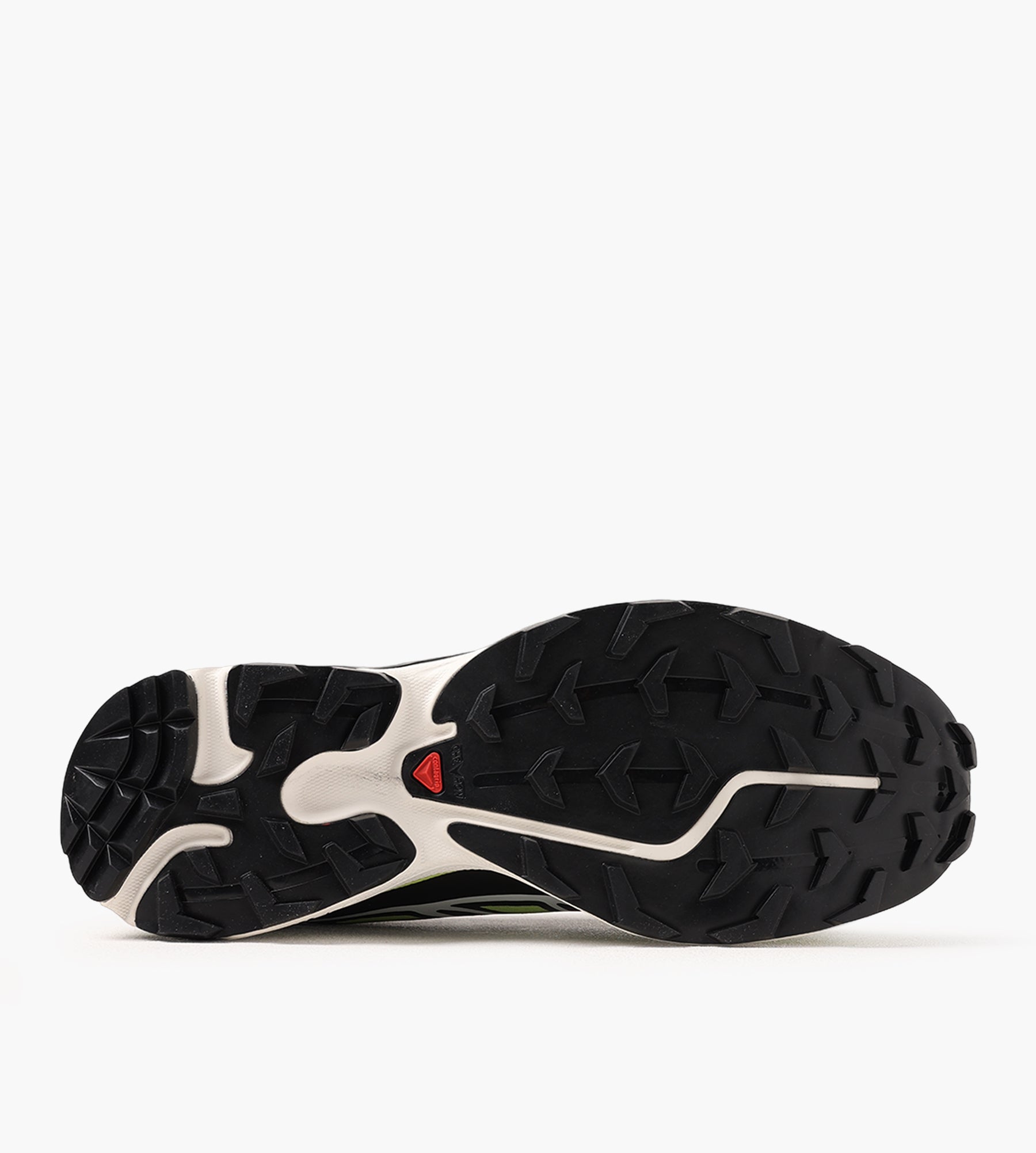 The Salomon XT-6 SKYLINE in Black, Maritime Blue, and Sharp Green features a sublimated mesh upper with gradient designs, combining visual depth with breathable functionality. Reinforced with a strong TPU film, the upper balances lightweight construction with durability, making it ideal for demanding environments.