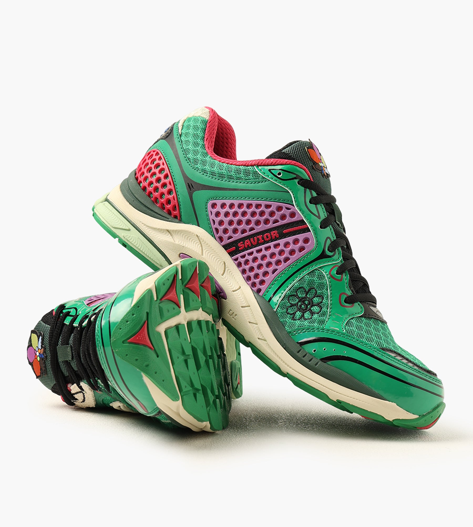 The Saucony ProGrid Triumph 4 in Fern/Fern blends retro-inspired aesthetics with modern performance, spotlighting the "Flowers Grow Uptown" collaboration with Jae Tips. Crafted with breathable mesh uppers, hairy suede eyestays, and faux hair overlays, it balances texture and durability. Patent leather toe caps and glossy overlays add a polished edge, while floral embroidery and custom branding, like the "Made by Jae Tips" collar detail, infuse a personal touch.