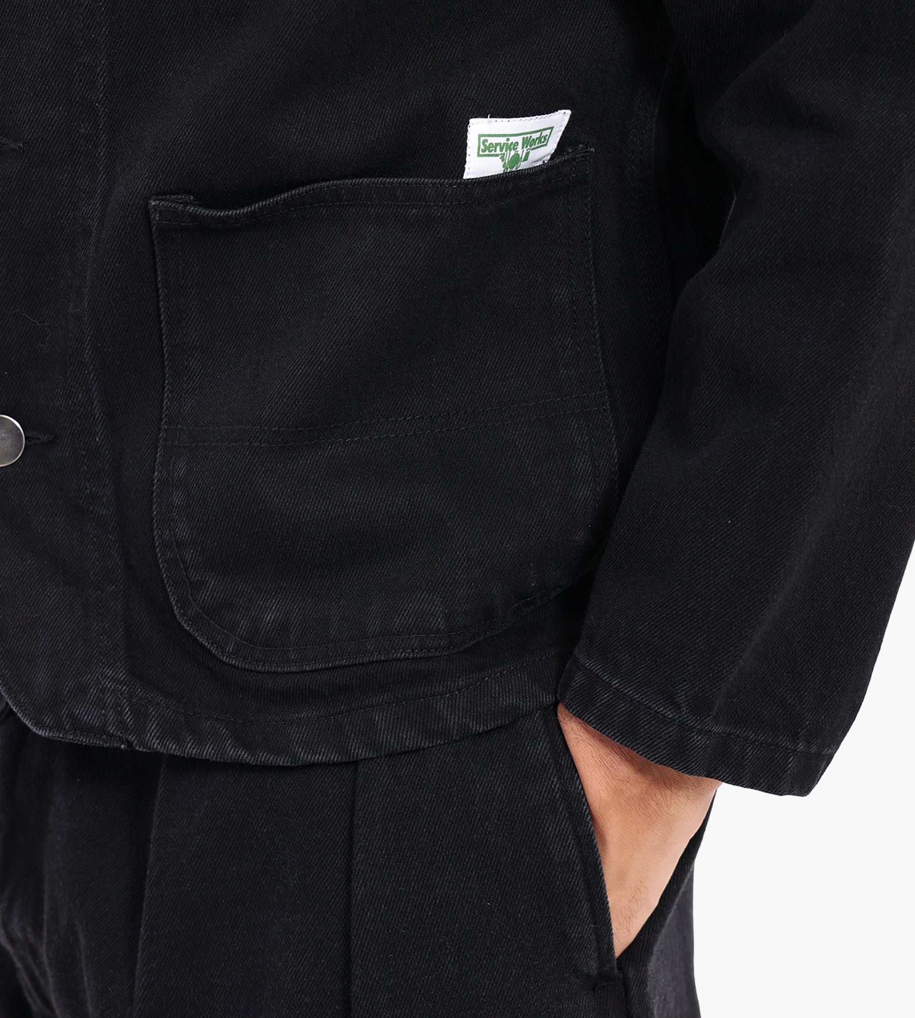 The Service Works Denim Coverall 2.0 in Dark Wash is crafted from robust denim, balancing utility and timeless appeal. The dark wash finish enhances the fabric's durability while offering a refined, versatile aesthetic suited to work or casual settings.