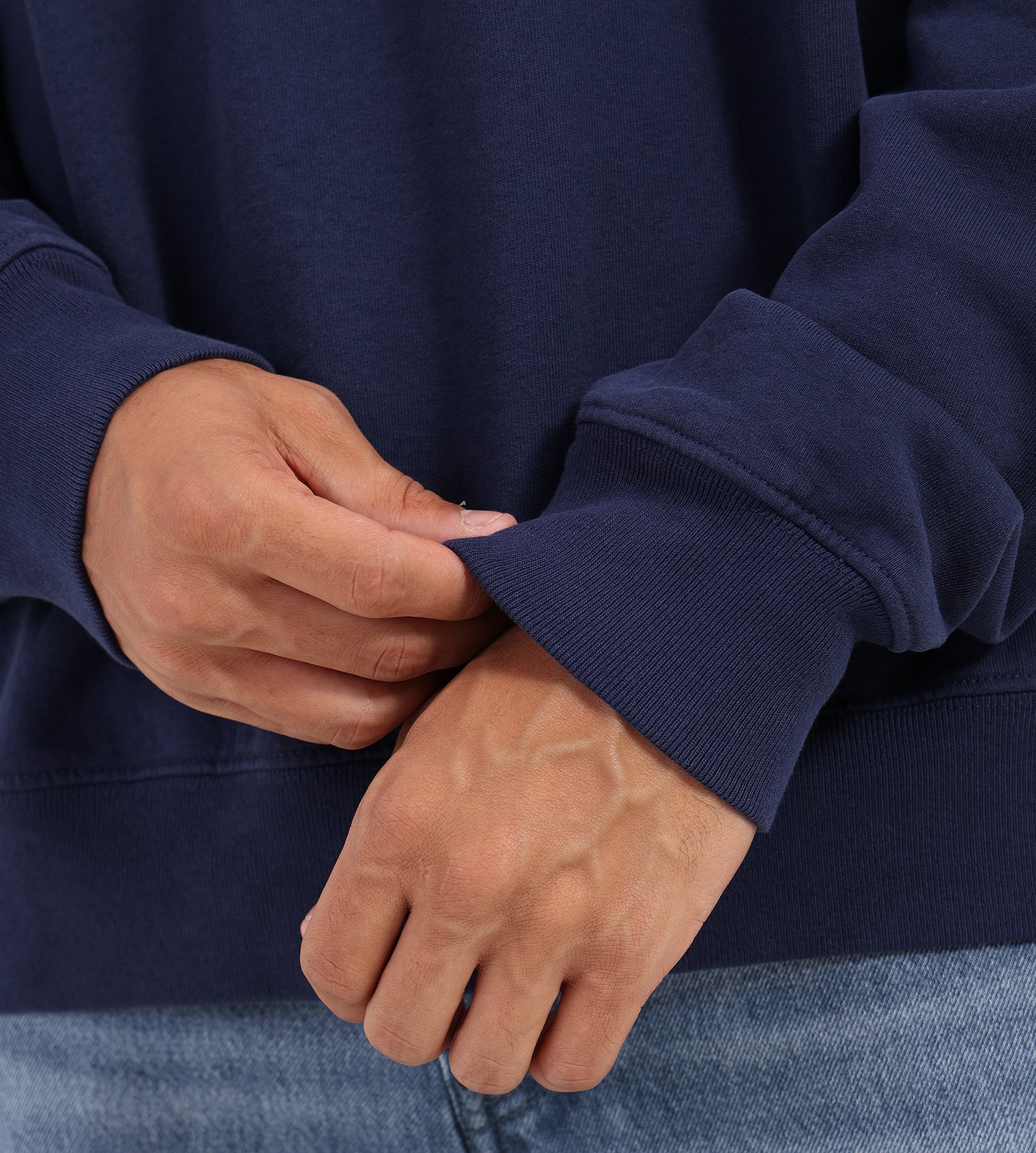 The Sporty & Rich Yankees Serif Crewneck in Navy/White is crafted from 100% USA-grown cotton, offering a substantial 11.5 oz weight that balances durability with a soft, premium hand feel. Its garment-dyed finish enhances the depth of color while ensuring a lived-in look that resists fading over time.