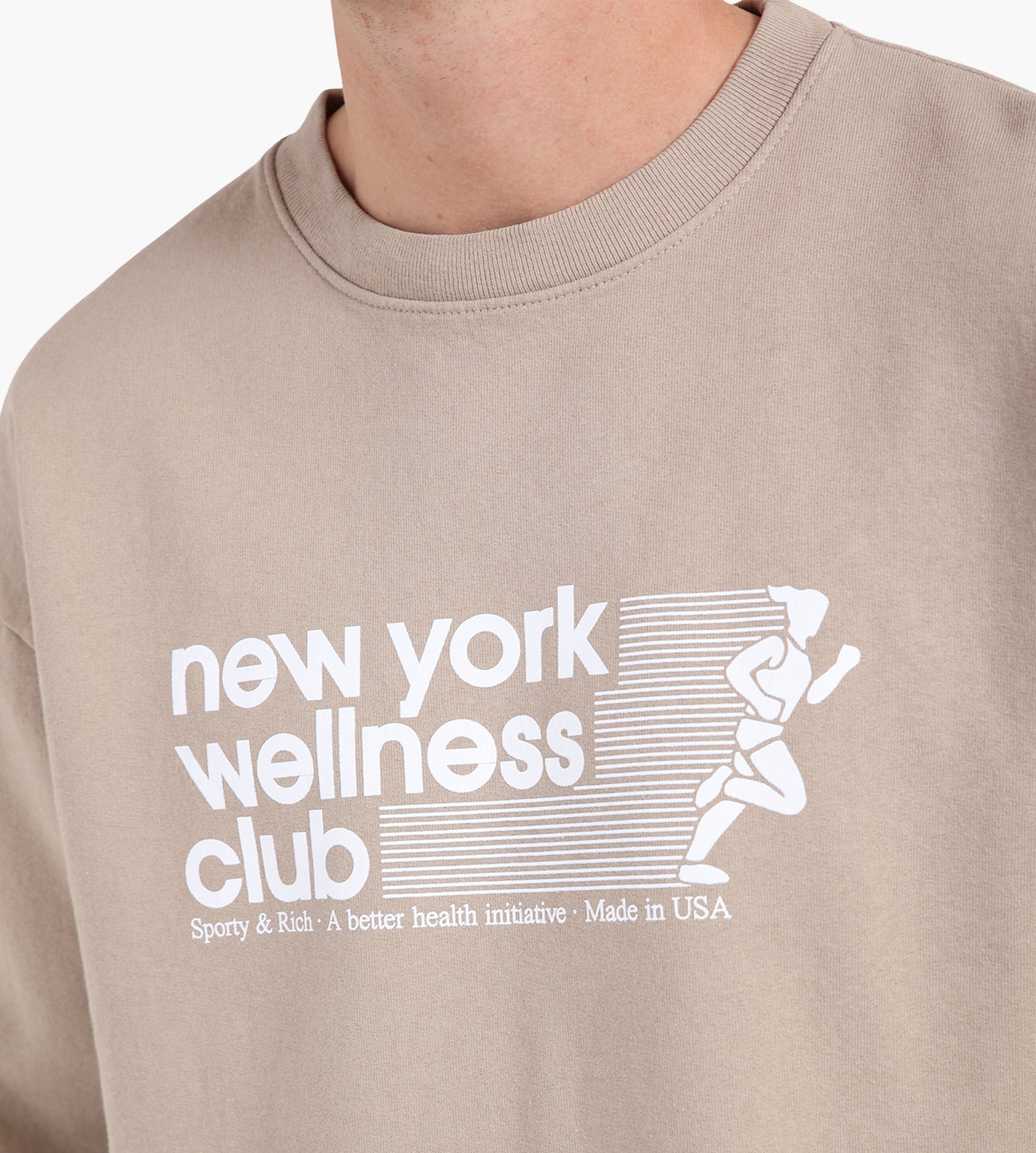 - Elephant grey color with vintage USA Wellness Club graphic